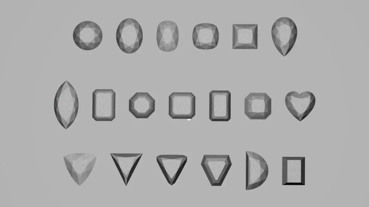 in this file, we have 19 Gemstones with different Shapes all sizes exactly equal to 1CT.