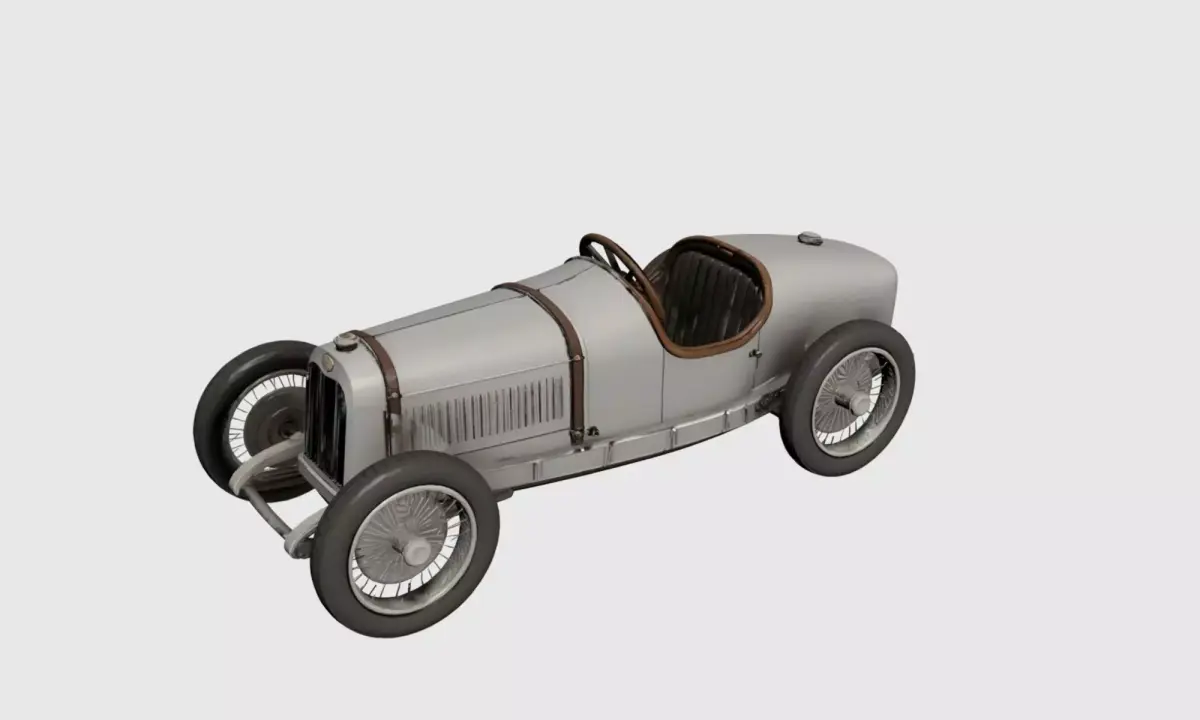 The model reflects the engineering simplicity and raw racing spirit of pre-war competition vehicles, making it ideal for historical visualizations, vintage motorsport scenes, museum-style renders, cinematic projects, and automotive concept presentations.