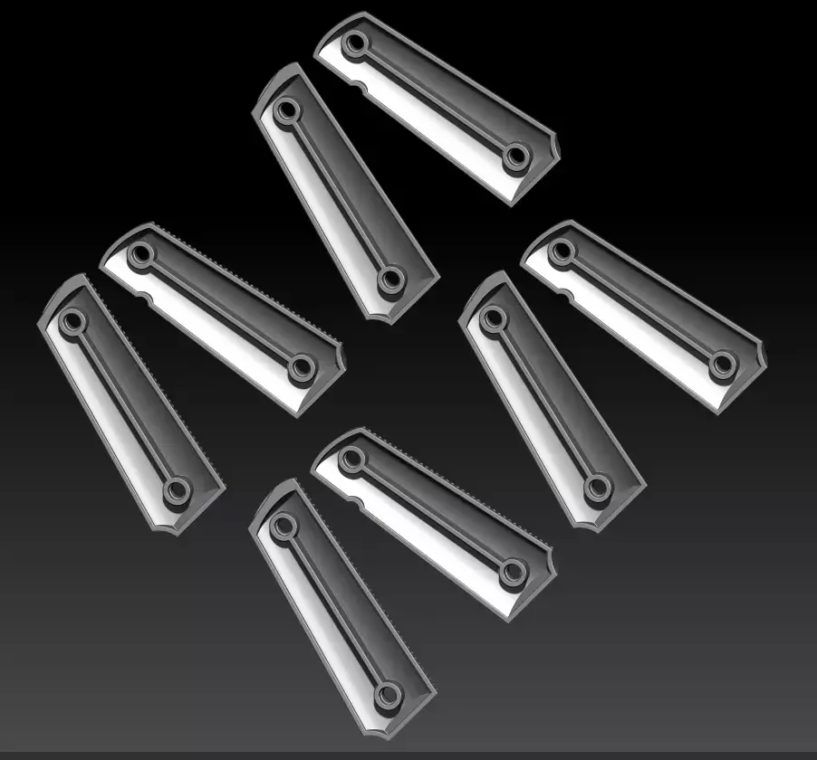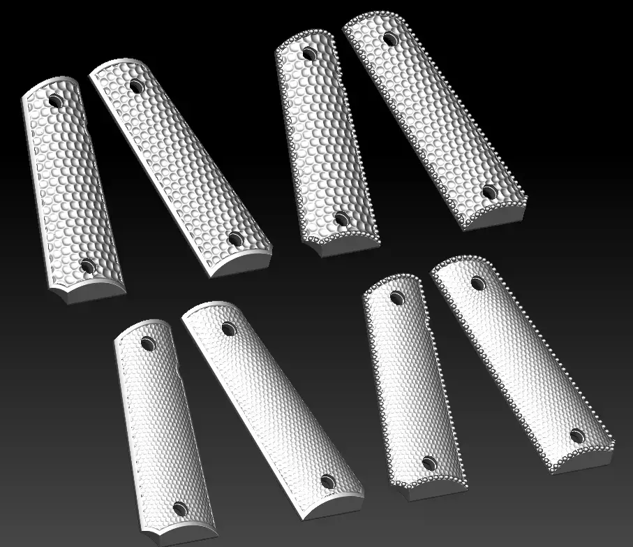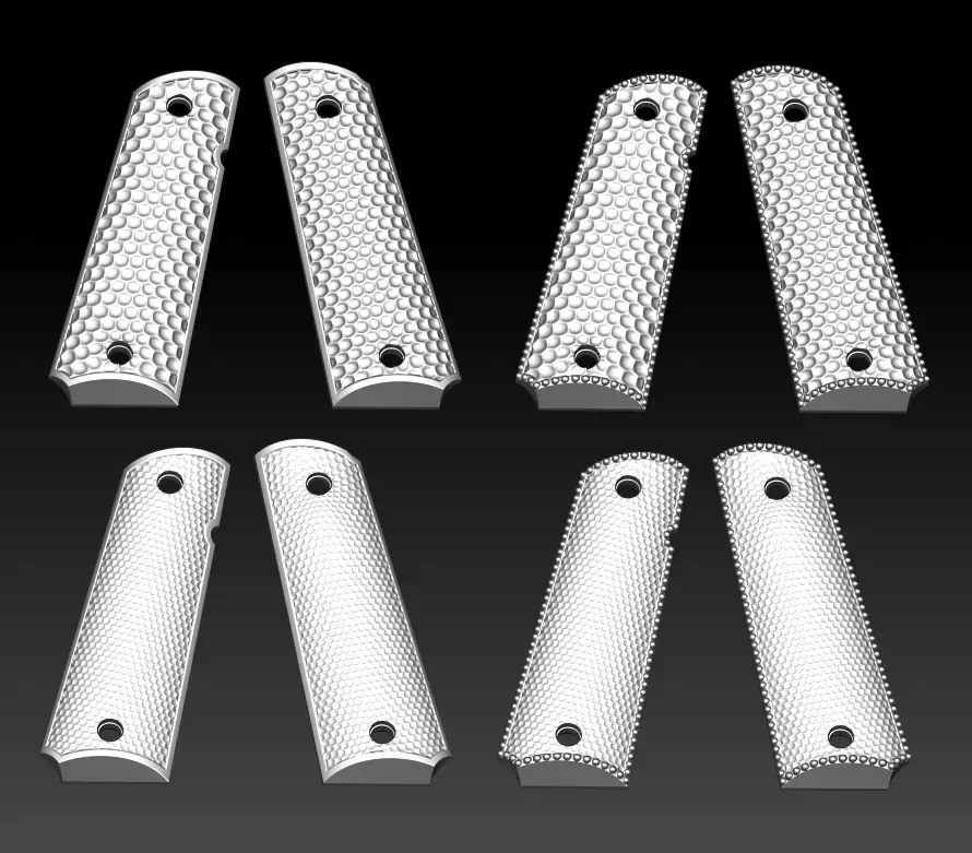 The grips fits the original Colt 1911 gun and can be produced of many different metals using lost wax casting or CNC milling.