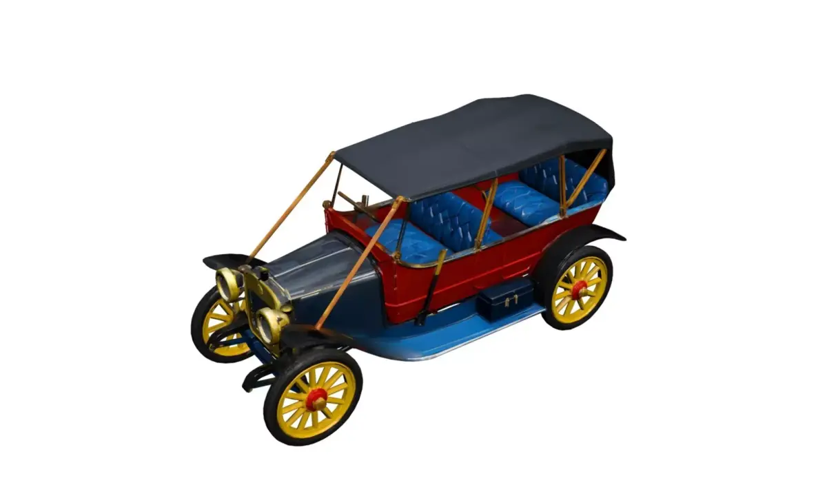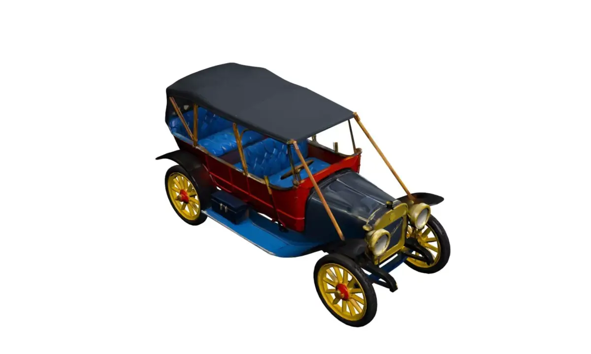This 1912 Brass Era car 3D model represents the elegance and mechanical craftsmanship of the early automotive age, known as the Brass Era.The vehicle features brass-accented components, a long upright bonnet, external headlamps, spoked wheels, and an open passenger cabin, accurately reflecting early 20th-century automobile design.