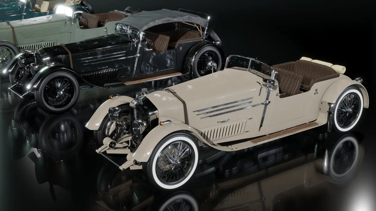 A Low-poly 3D model of a costomizable antique car made in Blender 3.0