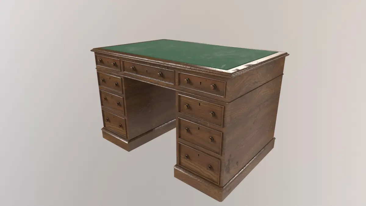 Introducing a meticulously crafted 3D model capturing the essence of a classic 1930's desk office. Step back in time and immerse yourself in the elegance and sophistication of this iconic era. This intricately detailed model showcases the perfect blend of vintage charm and functional design that defined the workspace of the time. Its generous dimensions provide ample workspace, complemented by multiple drawers for organizing documents and stationery.This 3D model encapsulates the nostalgia and grandeur of the 1930s, offering a captivating glimpse into an era where craftsmanship and aesthetics reigned supreme.