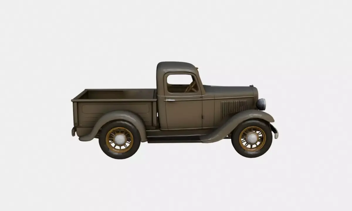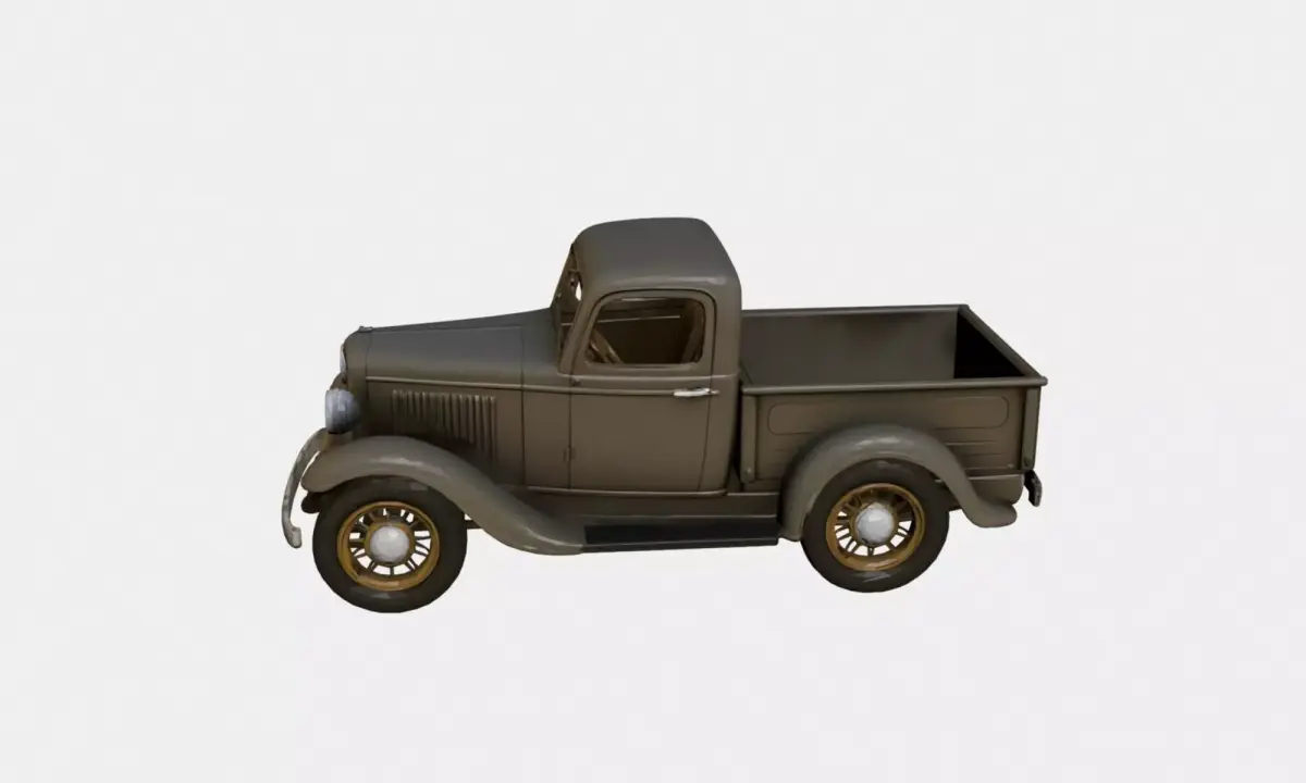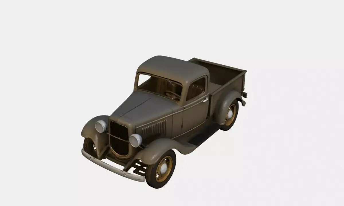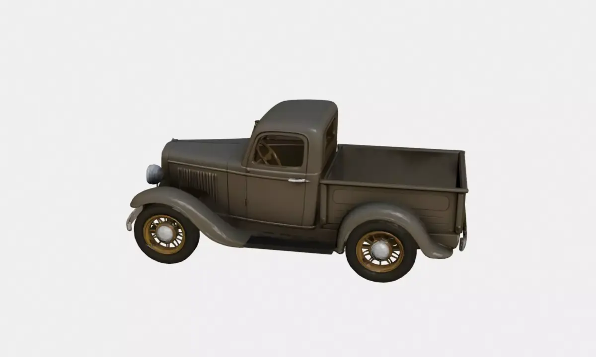 This 1930s early vintage pickup truck 3D model represents a classic utility vehicle from the early automotive era.The design features a boxy metal body, rounded fenders, exposed wheels, and a simple cabin structure, accurately reflecting the mechanical simplicity and proportions of 1930s pickup trucks.