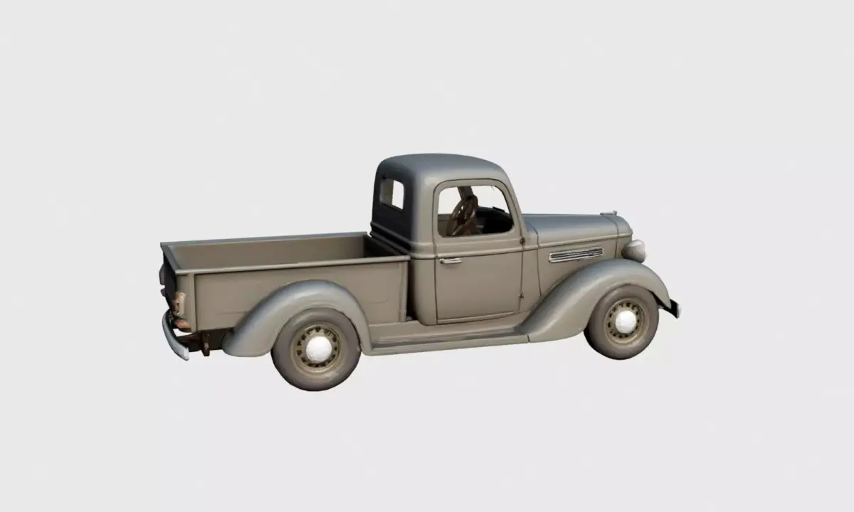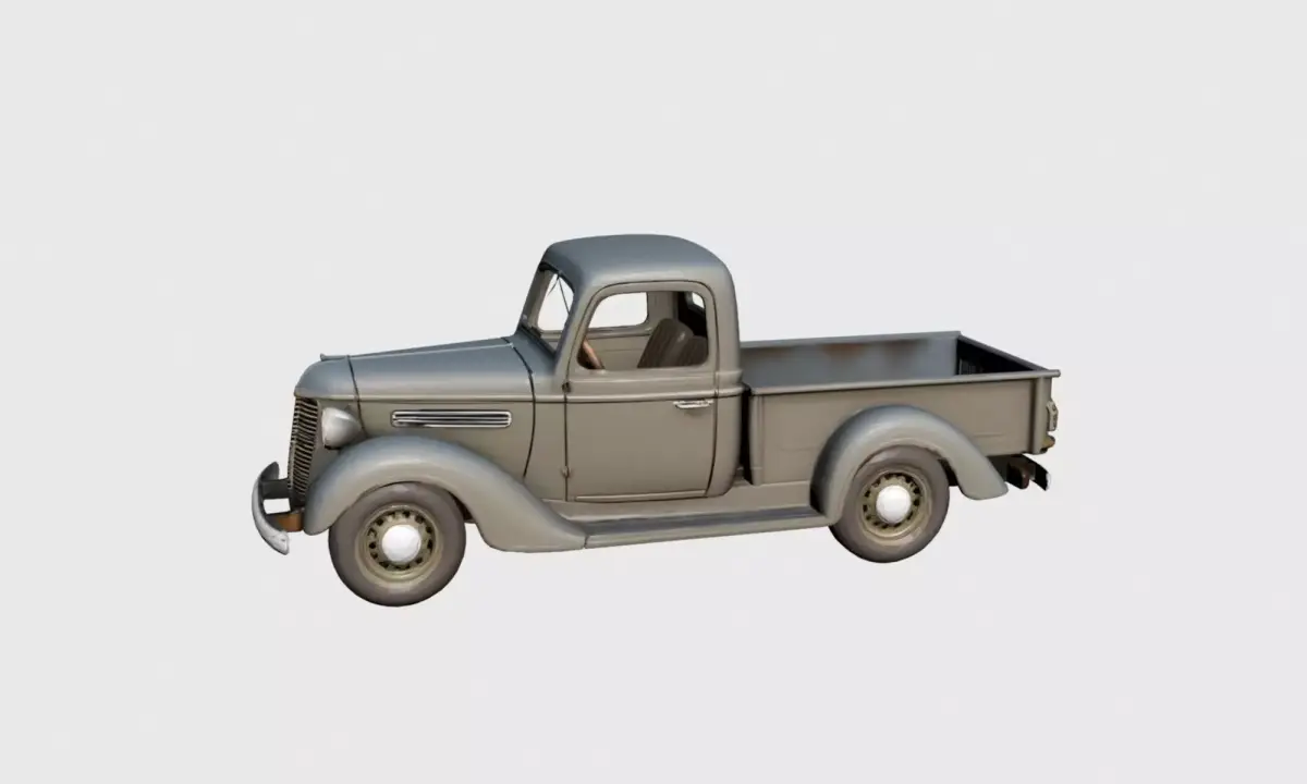 This 1930s early vintage pickup truck 3D model represents a classic utility vehicle from the early automotive era.The design features a boxy metal body, rounded fenders, exposed wheels, and a simple cabin structure, accurately reflecting the mechanical simplicity and proportions of 1930s pickup trucks.