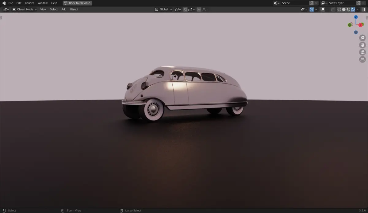 The Blender 3D file is set up with a professional lighting setup using Cycles rendering engine. It ensures realistic lighting and shadows that complement the model's details and materials.The lighting setup brings out the elegance of the Scarab's design, highlighting its unique features and evoking the ambiance of the 1930s era.