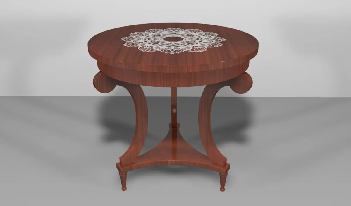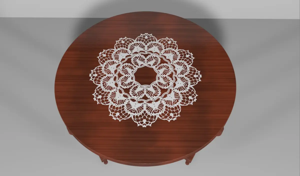 This is a simple table from the 1940's. My grandmother had one very similar. She had a doily on that table also. For some reason, wood was a popular material for building furniture during the 1940s1940sFor, maybe because of the war effort. The C4D file contains simple materials with no images. The doily was built from a vector that is a converted PNG to vector via Illustrator.