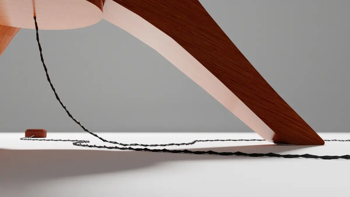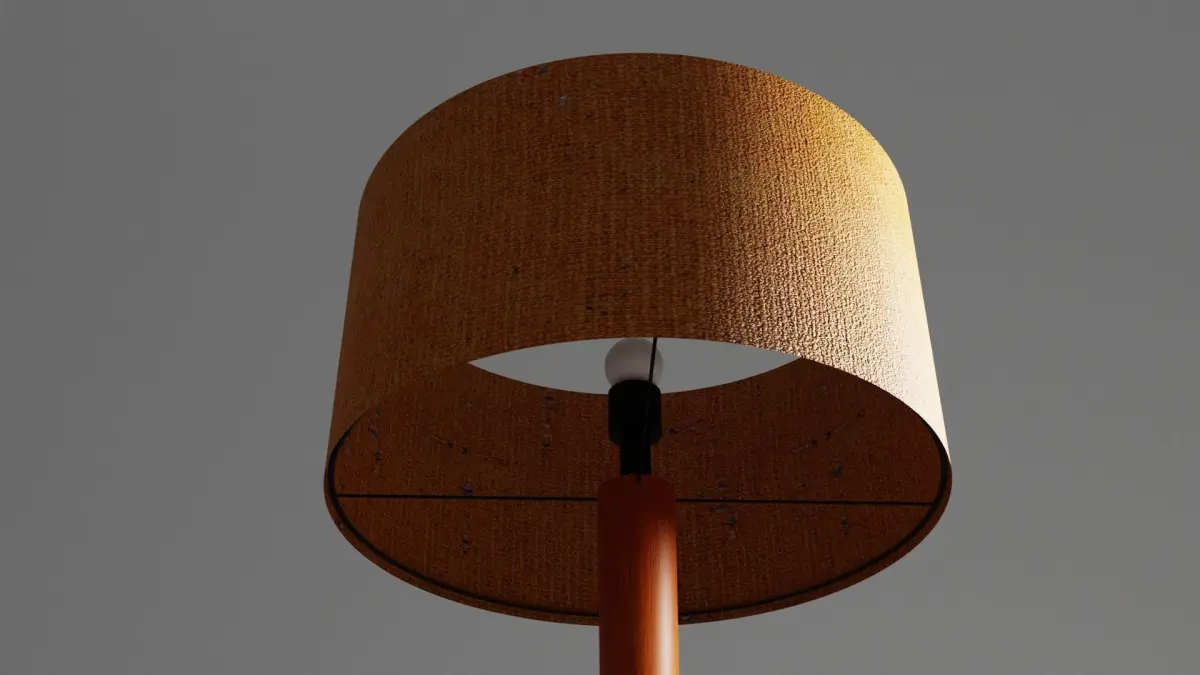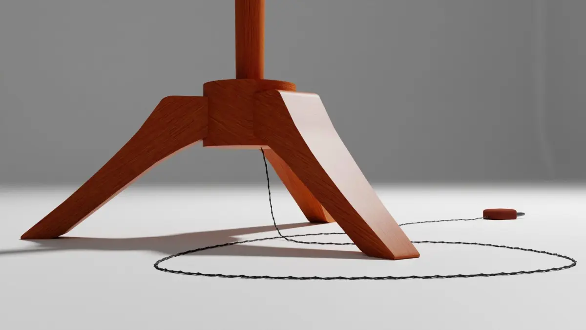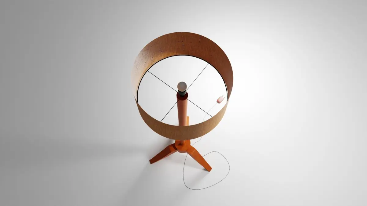 1950s style Lamp, wood and vintage fabric, braided electric wire, Low poly, no overlap UVmaps, baked textures, real size (169cm)