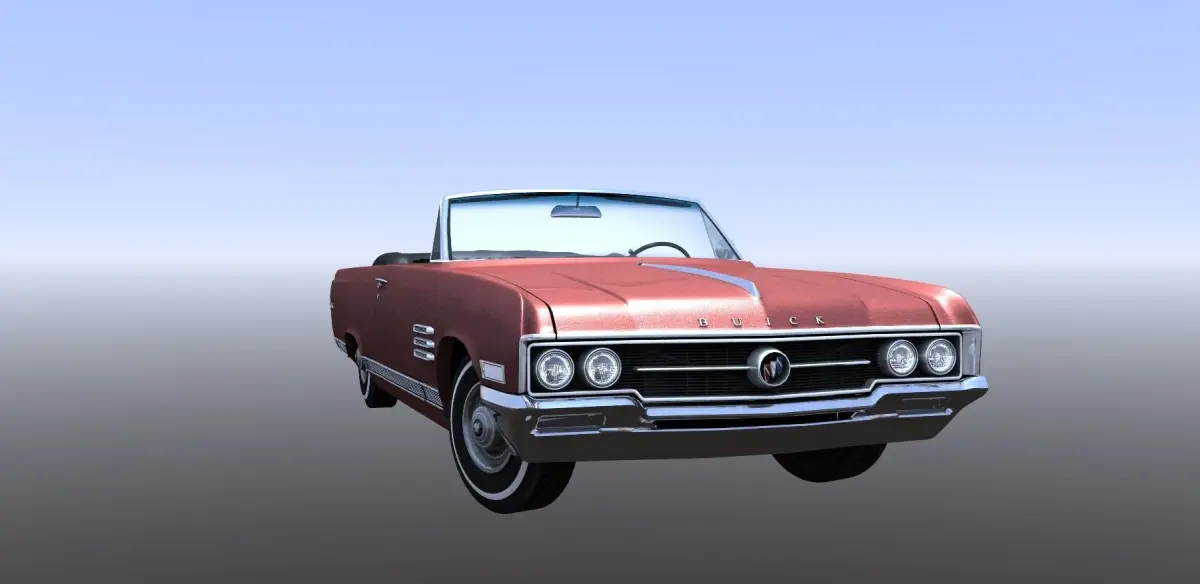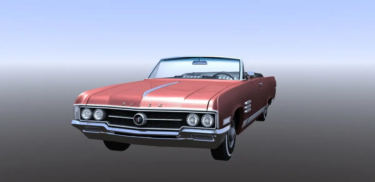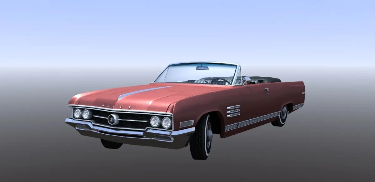 This is a Model of my Dads 1964 Buick convertible that I made using Lightwave 3D. It was built as a background item in a long shot for a scene and is a bit sloppy in places. This object is not built for 3D printing. The object has Moving parts with pivots and a steering null that are rigged for Lightwave and has not been tested in any other file formats. I built a rough 401 engine that was stock in the car but I did not finish out the engine compartment. The top , top cover and side windows do not move but they are seperate objects that can be either deleted or turned off and on in your scene. Please Enjoy