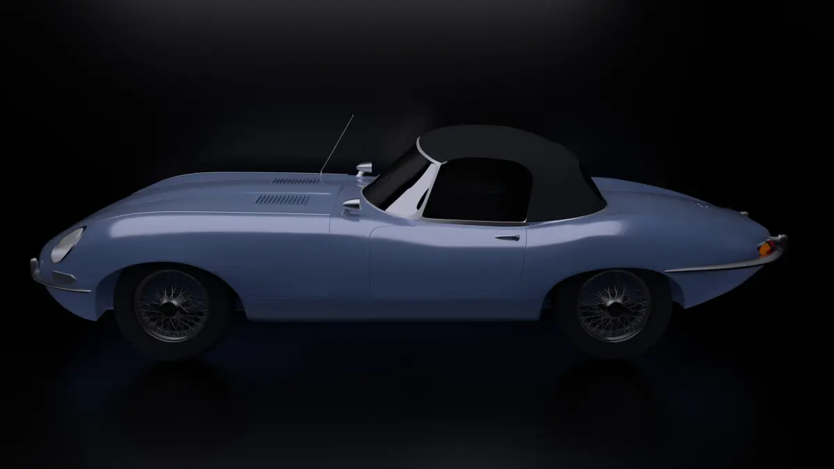 This is the American model of the 1960-1967 Jaguar XKE Convertible in Opalescent Silver Blue.