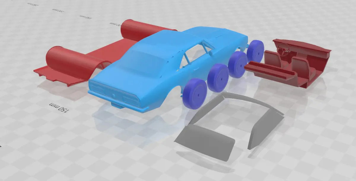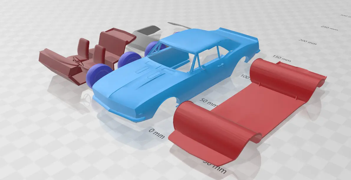This 3D model features the separate parts of the classic 1967 Chevrolet Camaro RS 327 V-8, capturing the distinct design of one of Chevrolet's most iconic muscle cars. Perfect for detailed 3D printing projects, customization, or assembly, this model includes all main components for an authentic representation of the Camaro RS. Ideal for automotive enthusiasts and collectors.