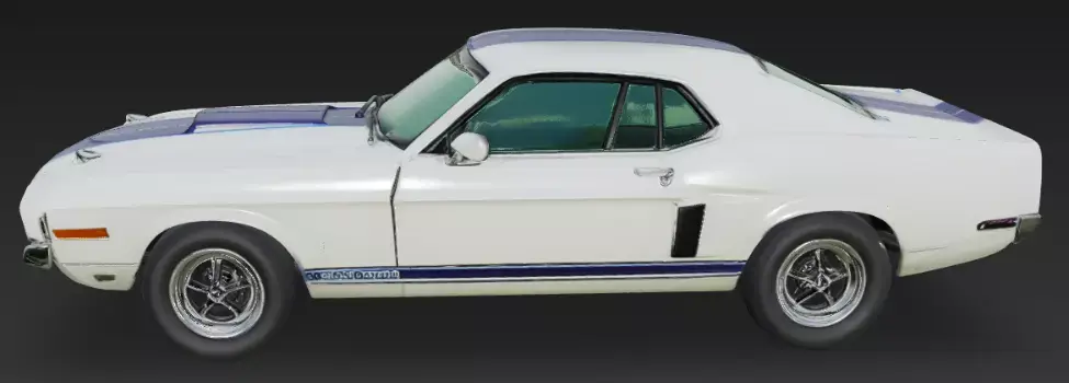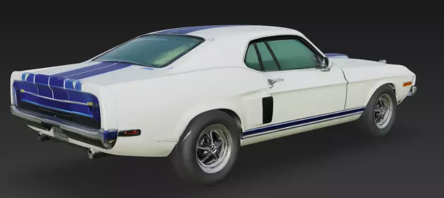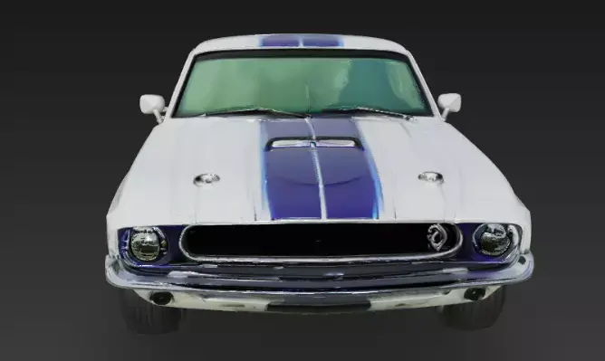 This stunning 3D model showcases the iconic 1969 Shelby GT-350, a legendary muscle car known for its powerful performance and sleek design. Featuring a white body with striking blue racing stripes, detailed headlights, and classic chrome accents, this model captures the essence of the original vehicle. Perfect for car enthusiasts, collectors, or anyone looking to explore the history of American automotive design in a virtual space.