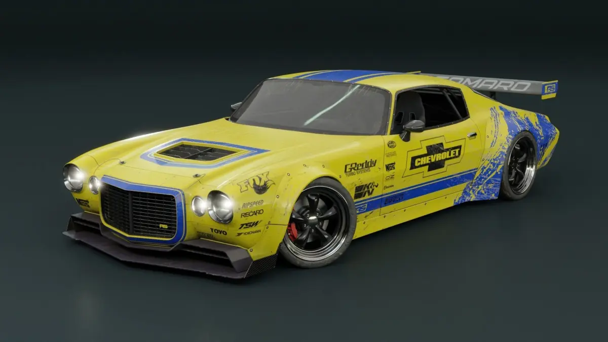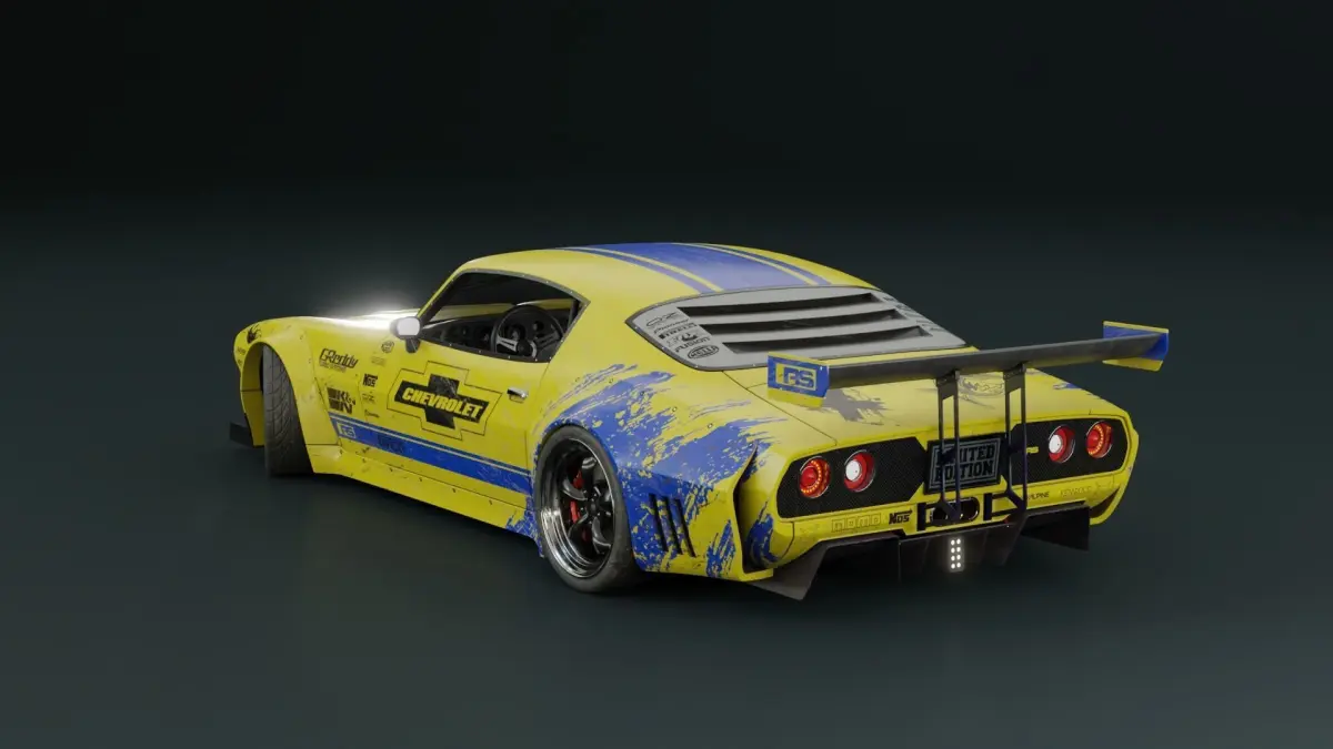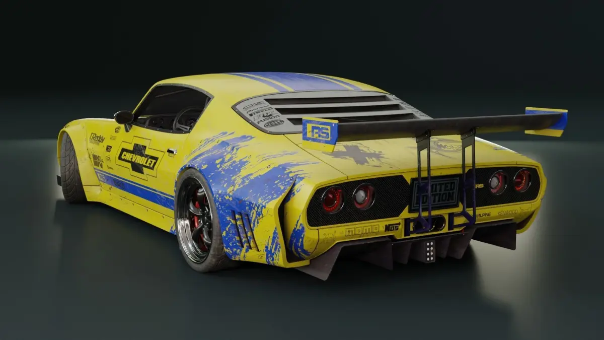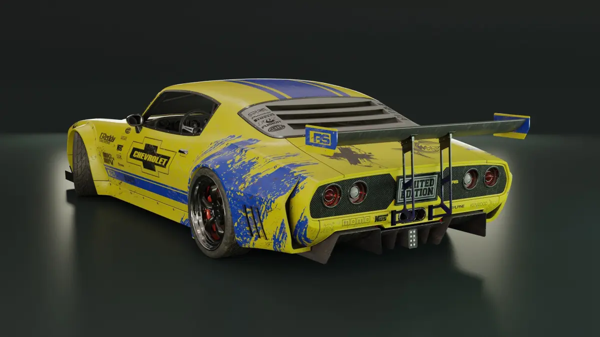 Model of a custom 1970 Chevrolet Camaro Mid-Poly 3D model. Intended for game/realtime/background use.