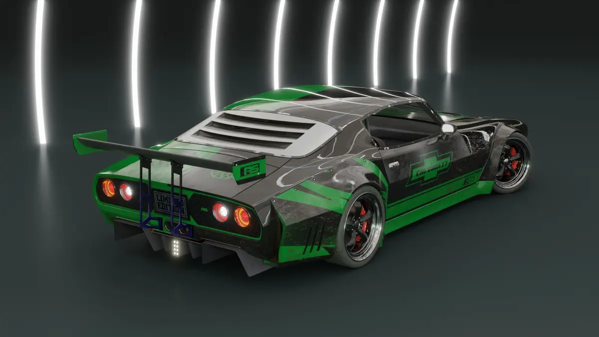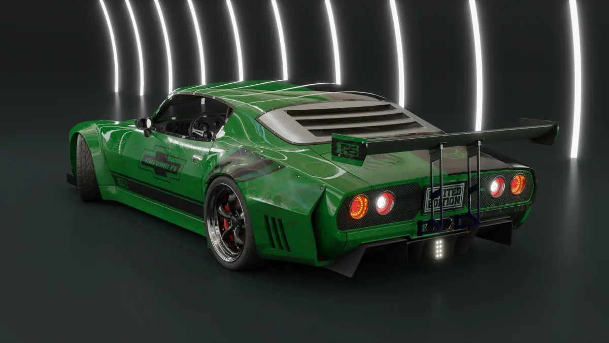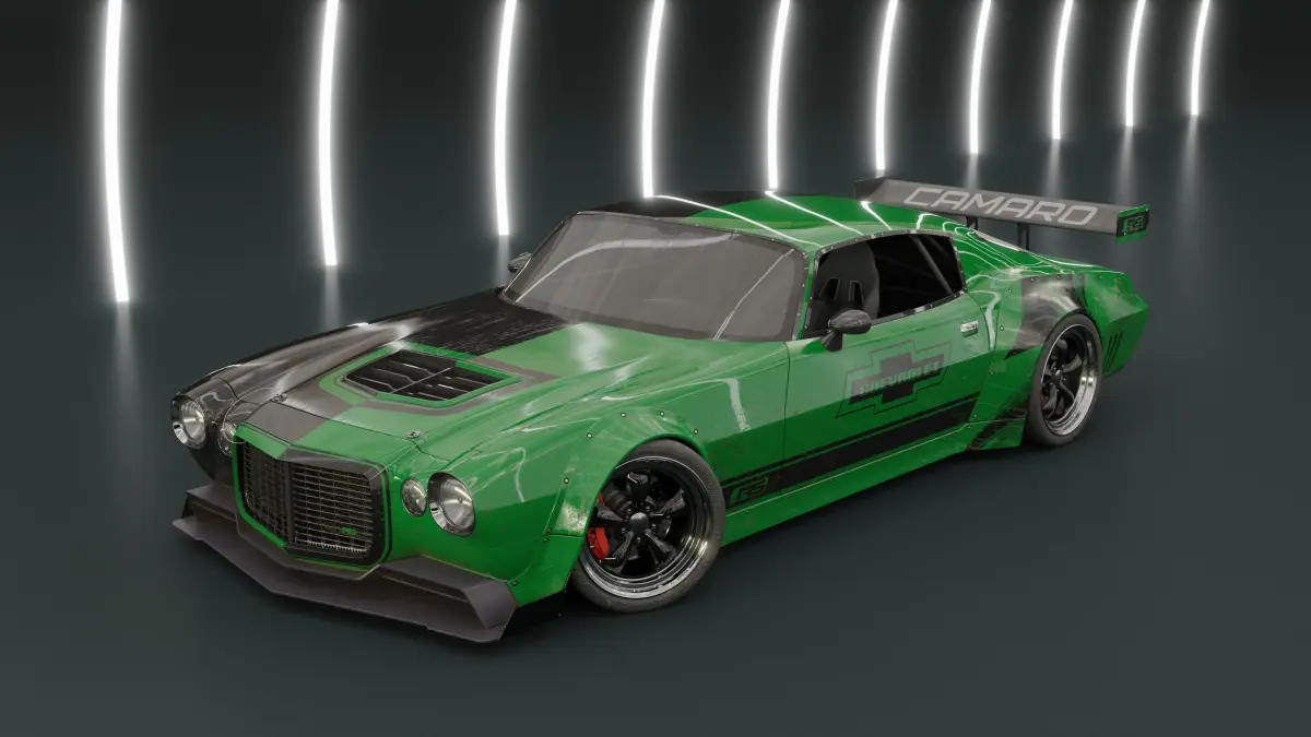 Model of a custom 1970 Chevrolet Camaro Mid-Poly 3D model. Intended for game/realtime/background use.