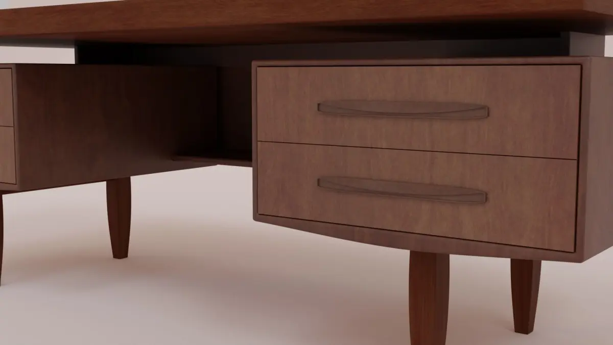 Beautiful** 20th century 1970's wooden desk**, this model is inpired by a famous G-plan desk. Ideal for vintage interior designs and archvis. modelled and textured in blender.