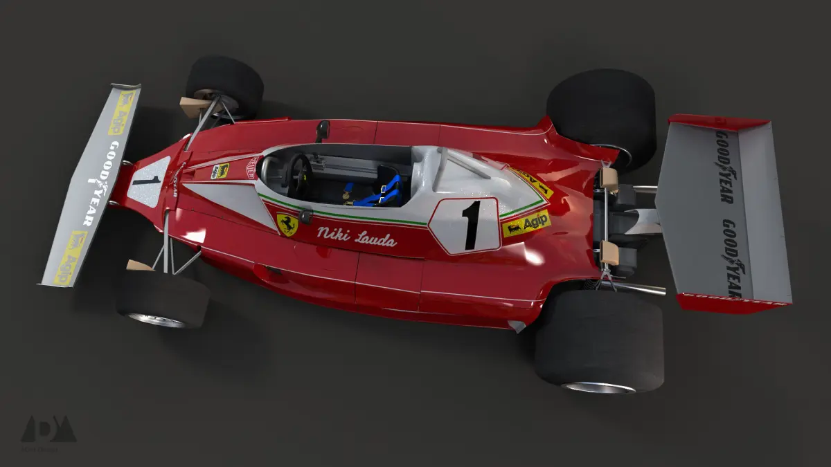 Model of Ferrari 312T driven in 1976 Formula 1 World Championship by Niki Lauda. Body and wing livery Textures included. If you have any questions or issues fell free to contact me