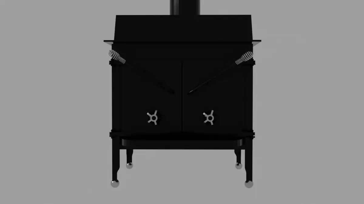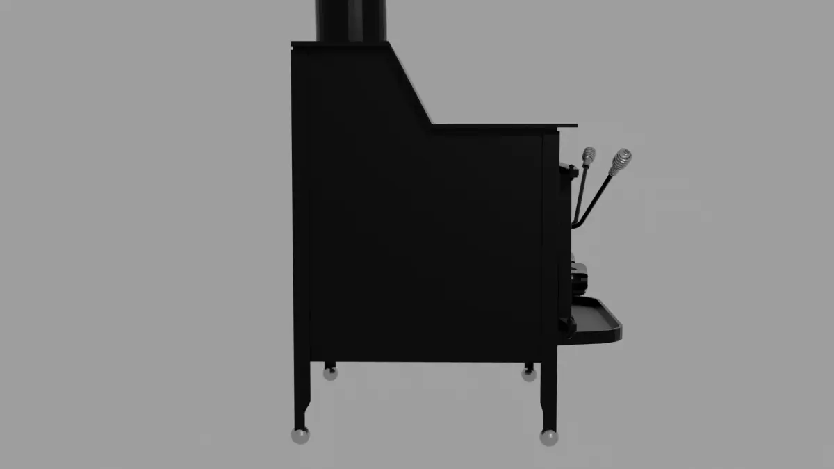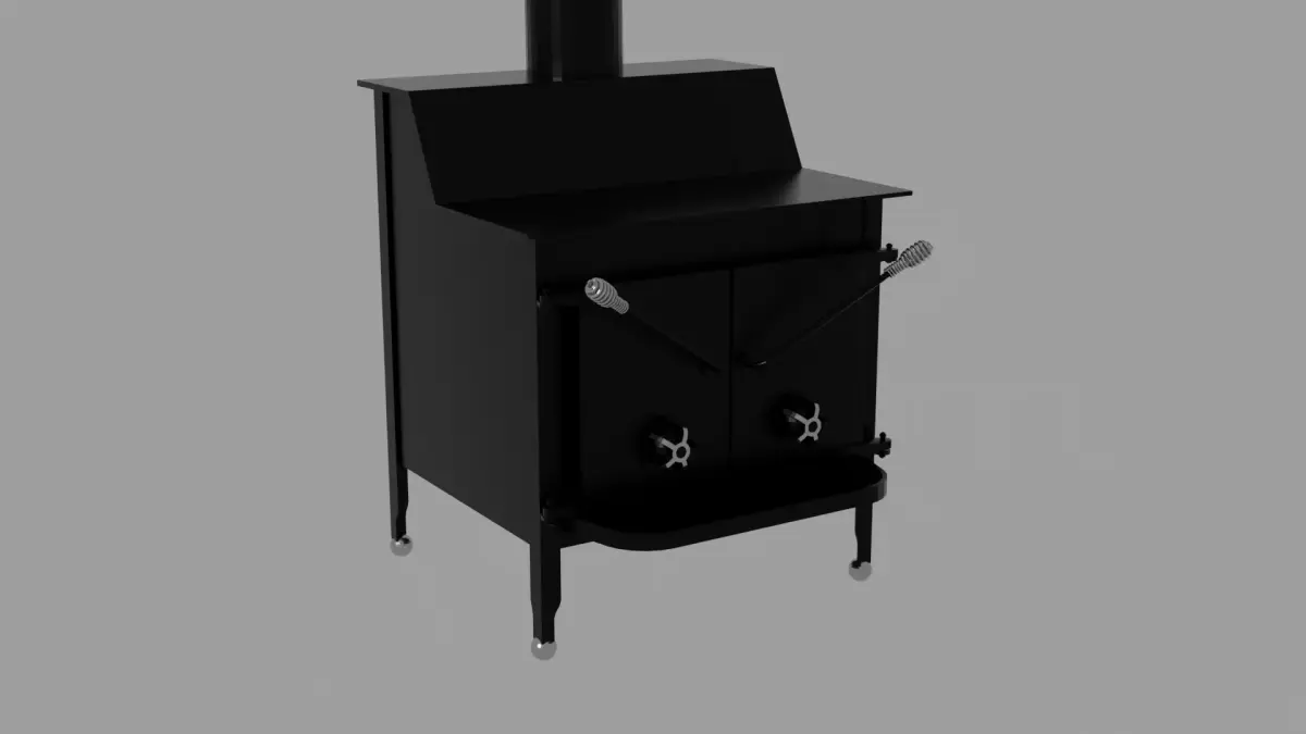 This detailed 3D model showcases a 1980s-style vintage wood heating stove, crafted with attention to realism and classic design. The stove features a sturdy black iron body with polished chrome accents that highlight its vintage charm. Included with the model is a matching stovepipe, allowing for complete placement in any interior or rustic scene. The design reflects the rugged, functional aesthetic of traditional home heating stoves, making it perfect for cabin, farmhouse, or period-style environments. Subtle surface details, realistic materials, and clean geometry make it ideal for close-up renders or background props.