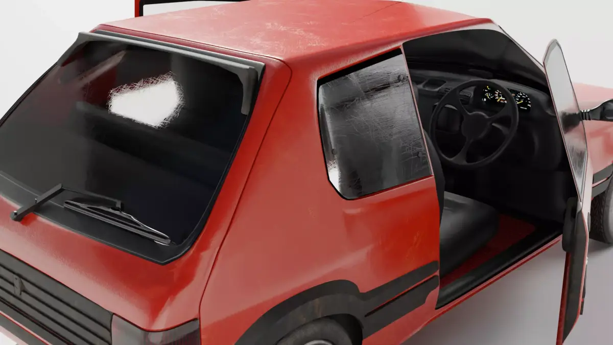 This 3D model represents a classic compact hatchback from the 1980s, designed with accurate proportions and realistic details.
