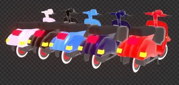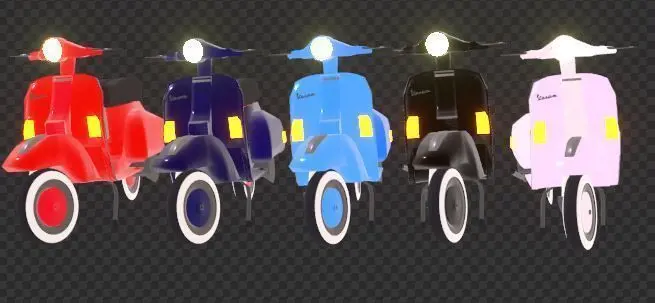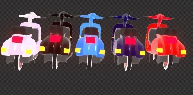 This pack contains Red, Dark Blue, Light Blue, Black, and White variants of the 1981 Vespa P125X. This model contains a texture for the speedometer, the Vespa logo, and the Piaggio logo.
