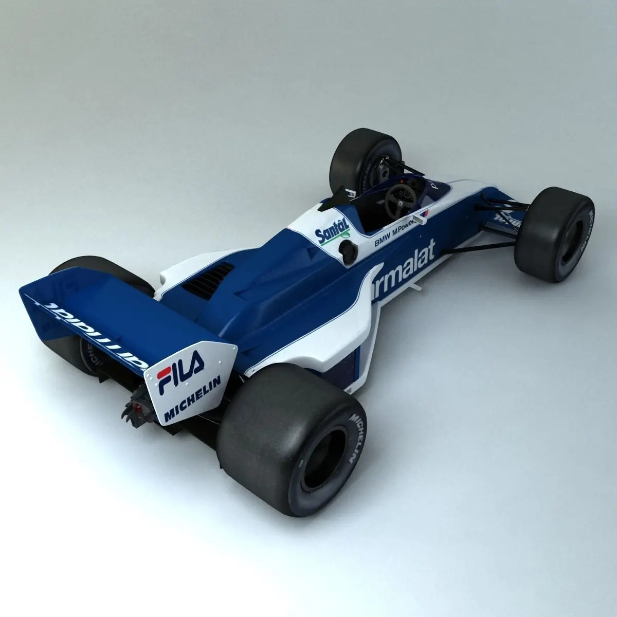 This is a model of an 1983 F1 Brabham BT52 designed by Gordon Murray. The Brabham BT52 was driven by 3-time World Champion Nelson Piquet and Riccardo Patrese. Piquet won his second world championship in this car. This car was one of the first Formula 1 cars tested by Ayrton Senna in 1983. Included in the file are both teams car livery textures (Piquet's and Patrese's). Also included are interchangeable slick and rain tires.