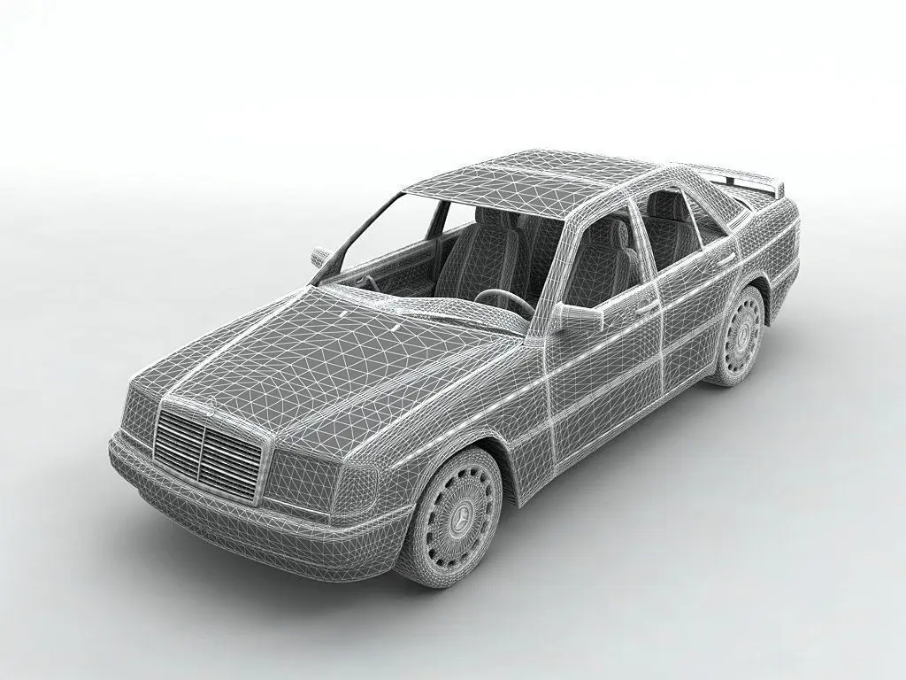 1985 Mercedes 190E Sedan(With Simple Interior) This model was designed to scale from blueprints. Although all the major dimensions are correct (length, height, width, wheelbase etc.) every exact arc and measurement was not taken into account for engineering purposes. This model is best suited for entertainment and multimedia.
