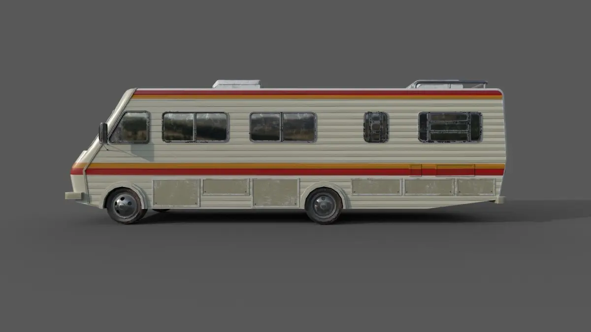1986 Fleetwood Bounder Breaking Bads caravan, No rig, no animation. Just caravan.Verticles : 13158Edges : 24740Faces: 11653Triangles 23856