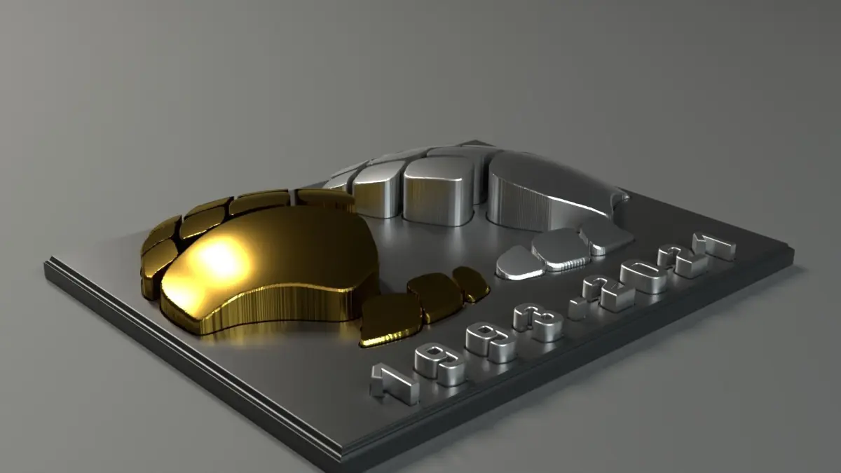 The model is separated in different groups (left hand, right hand, base, and text), so you can easily print them in different materials. The base is slightly engraved so the hands and text fit perfectly in their spots. We recommend DP original logo tones: a golden left hand, a silver right hand, a dark base, and a contrasting light colour for the text. Also consider that painting the models will give them a better surface finish, and pretty much better colour.