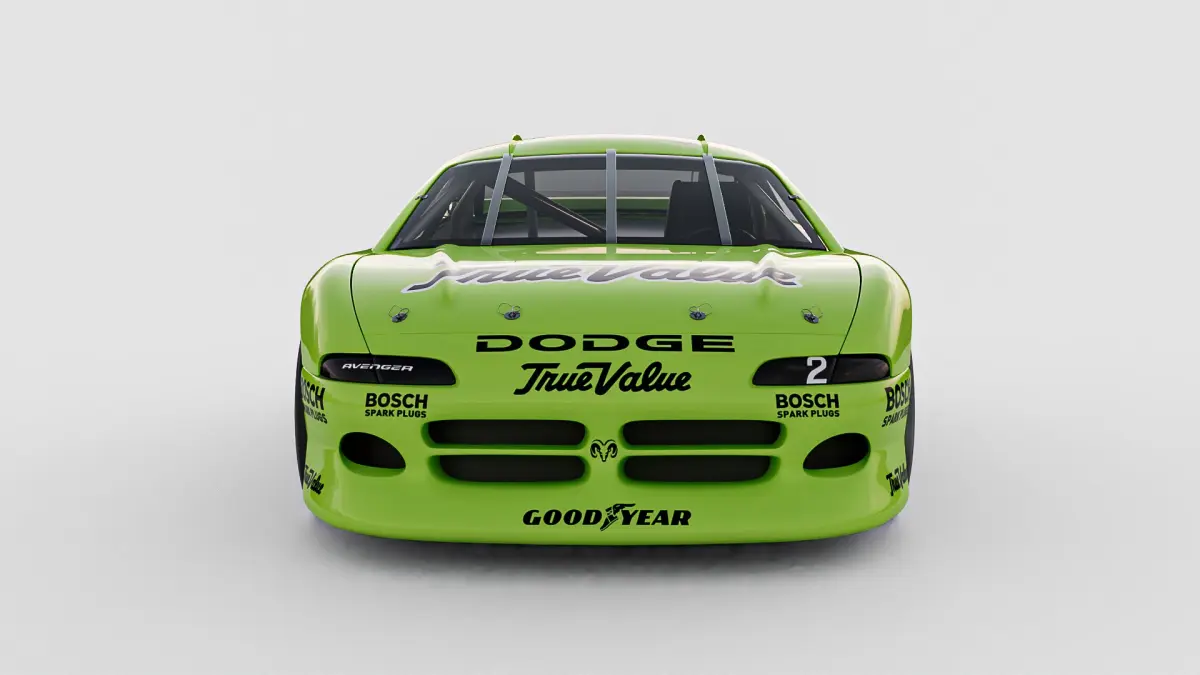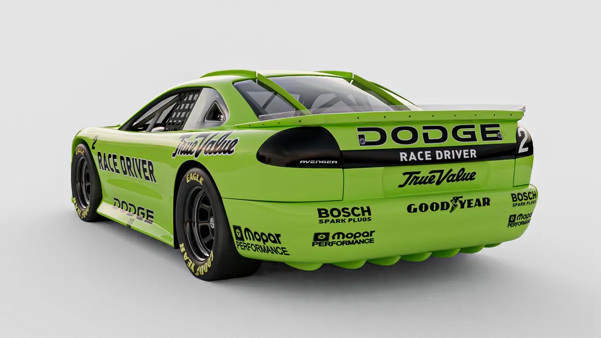 High-Poly Exterior: Carefully modeled to capture the unique shape and details of the 1994-95 Dodge Avenger IROC stock car.