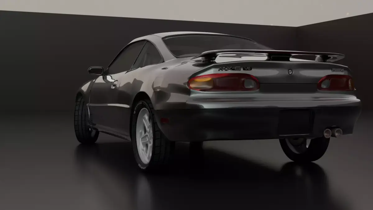 This is the second-generation (GE) Mazda MX-6, manufactured between 1992 and 1997, with a 2.5-liter V6 engine.Made in Blender 4.5.0