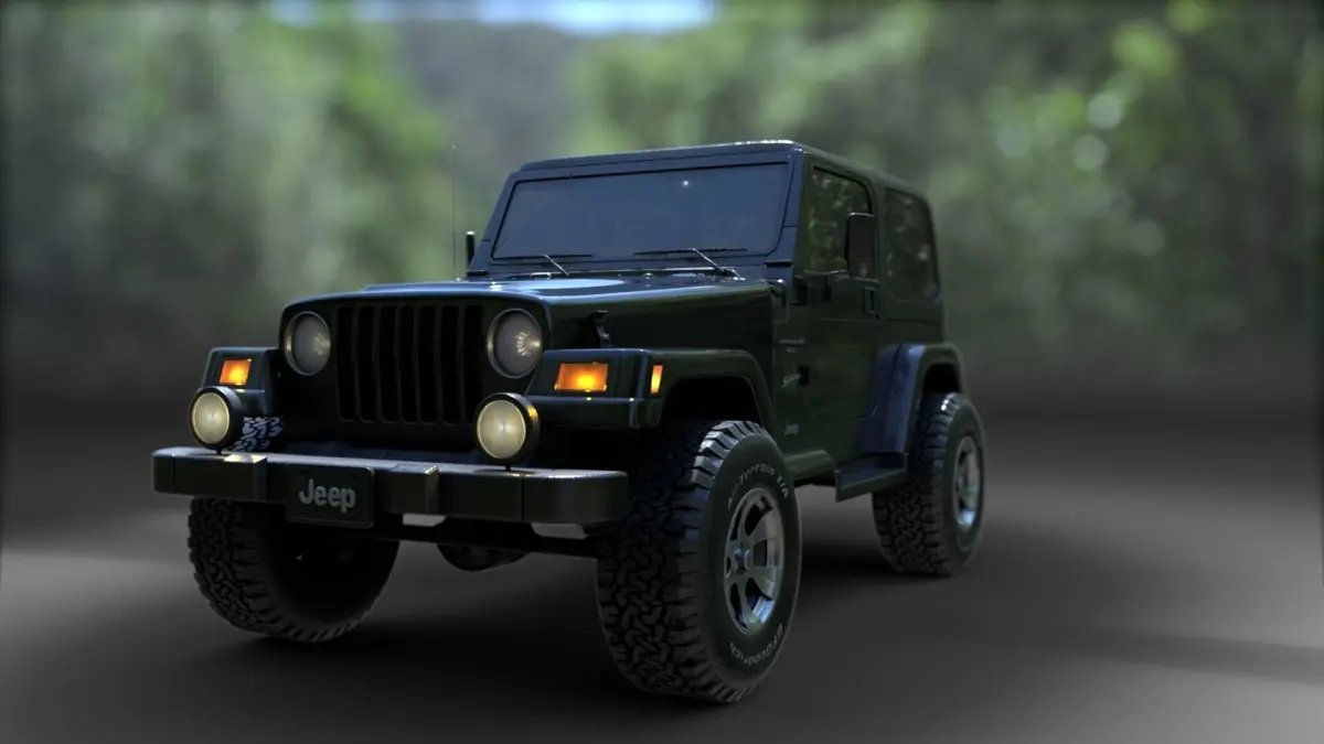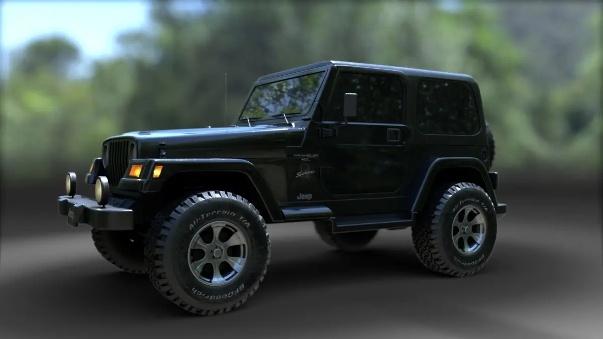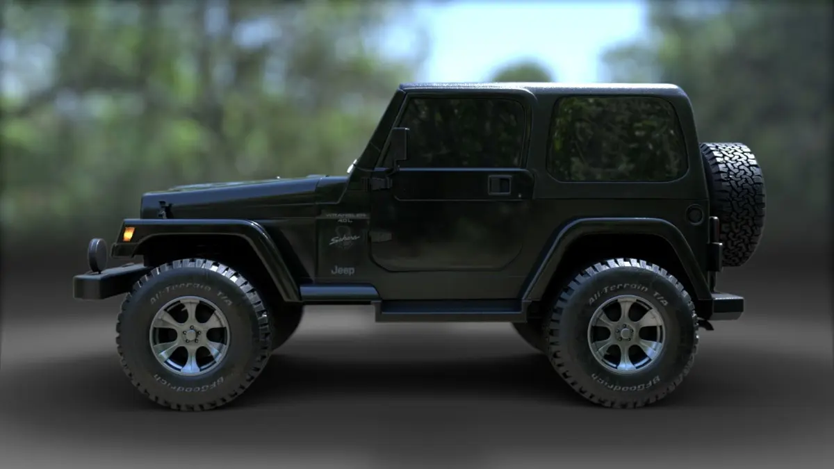 Blending less reflective wear on the body of the Jeep.