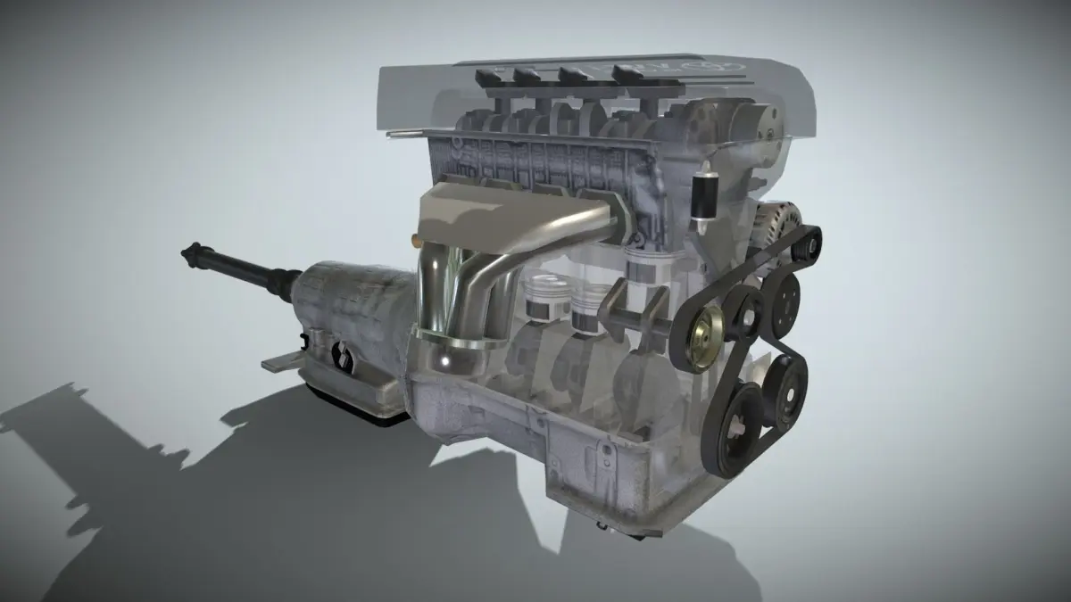 The model ready for use in GameDev. Textured, animated. rigged. 2 type prefabs (front/rear wheel drive). Detalization and sepateted crankshft,camshafts, pistons, pulleys.