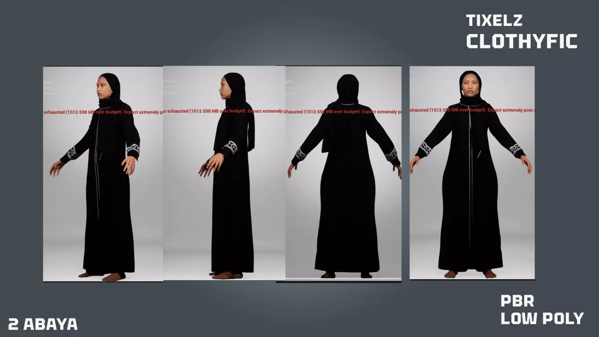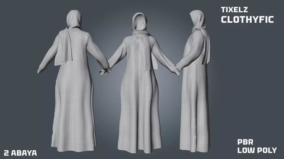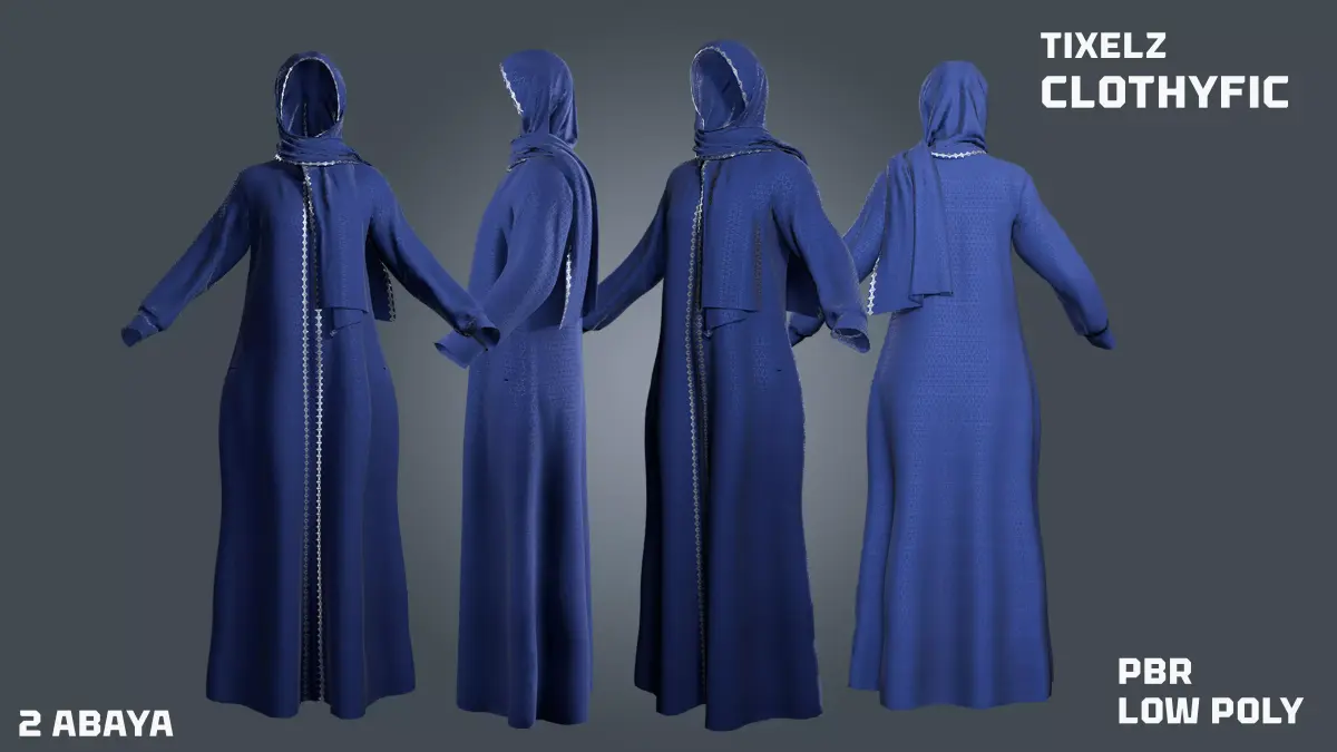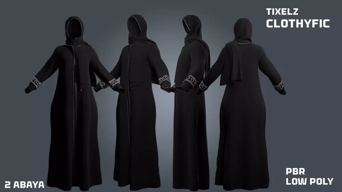 This asset pack includes two detailed Abaya outfits designed for use in Unreal Engine Metahuman and Blender. Each Abaya is fully rigged, PBR-ready, and optimized for both real-time and cinematic use.