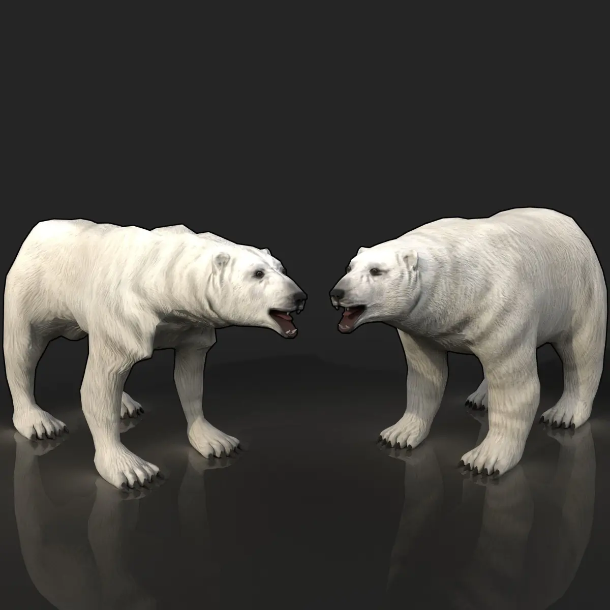 2 Bears - bony skinny starving ravenous emaciated gaunt polar Low-poly 3D model