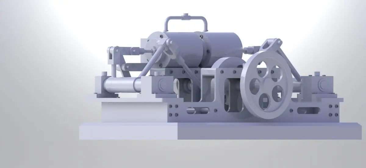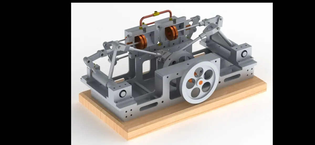 Steam Inlet: Steam is admitted into one end of each cylinder through a valve.Power Stroke: Steam enters one cylinder, pushing its piston away from the valve end. This is the power stroke. As the steam expands, it does work on the piston, converting its energy into motion.Exhaust: After the power stroke, a valve opens to allow the used steam to exit the cylinder.Piston Return: The flywheel's momentum, combined with the connecting rod mechanism, pushes the piston back to its original position. This is the exhaust stroke.Steam Switch: At the same time, the second cylinder goes through a similar cycle. While one cylinder is in the power stroke, the other cylinder is in the exhaust stroke, and vice versa. This arrangement ensures a continuous rotational output.Advantages: