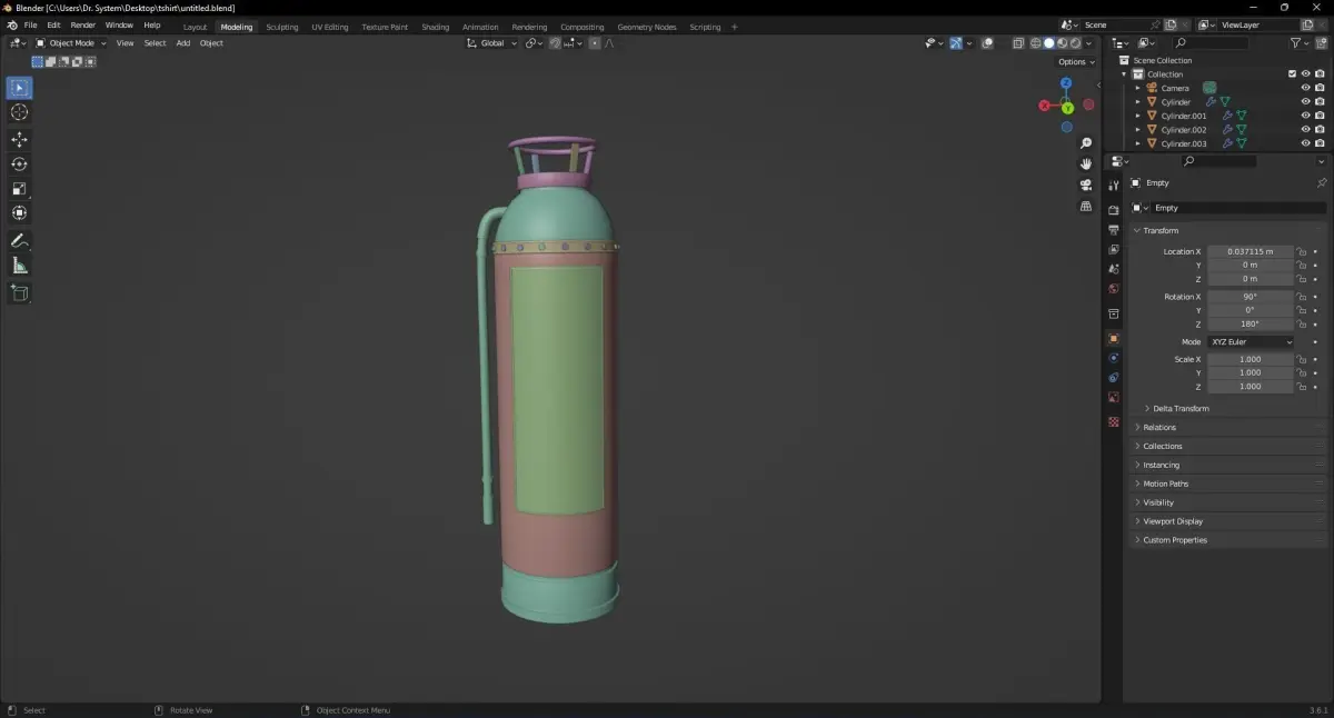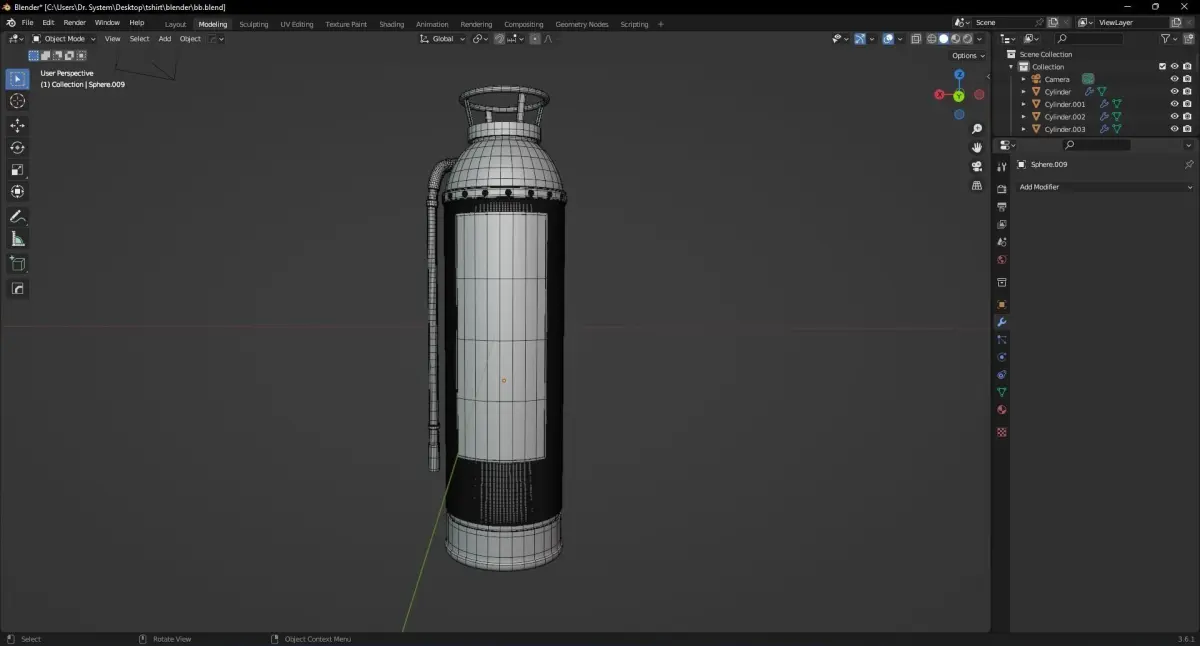 A model of simple fire extinguisher for subdivision, with supporting edges.