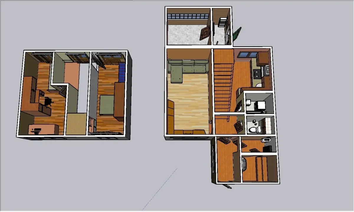 This 2 flors furnished middle-side house was created in Sketchup with many materials, colors and layers. 2 floors devided and same in one file. And this type of house really exsist, design was taken from real object .Allowed for commercial use.