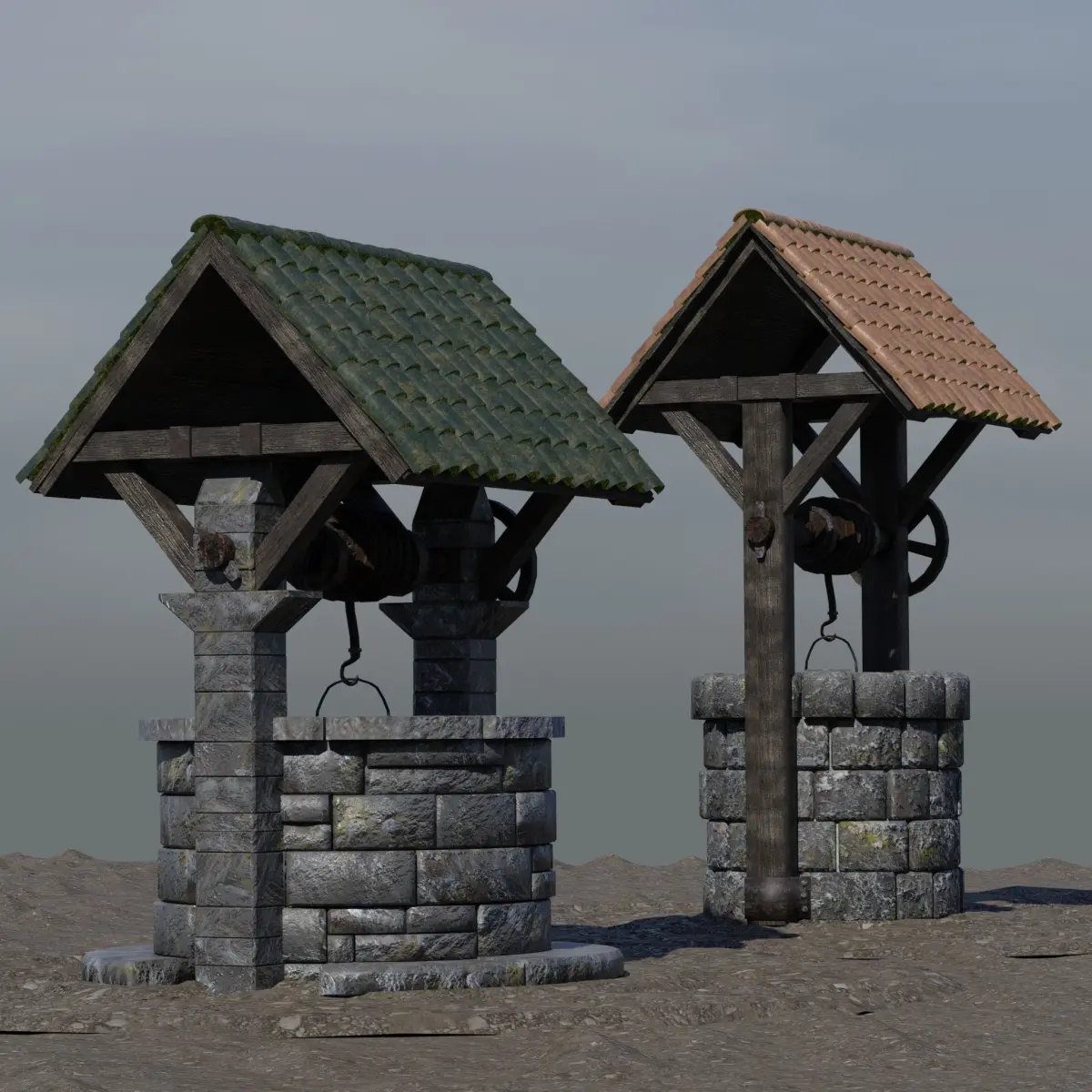 2 highly detailed medievil wells, created in Blender 2.82, with correct geometries .fully UV-unwrapped with all textures included.