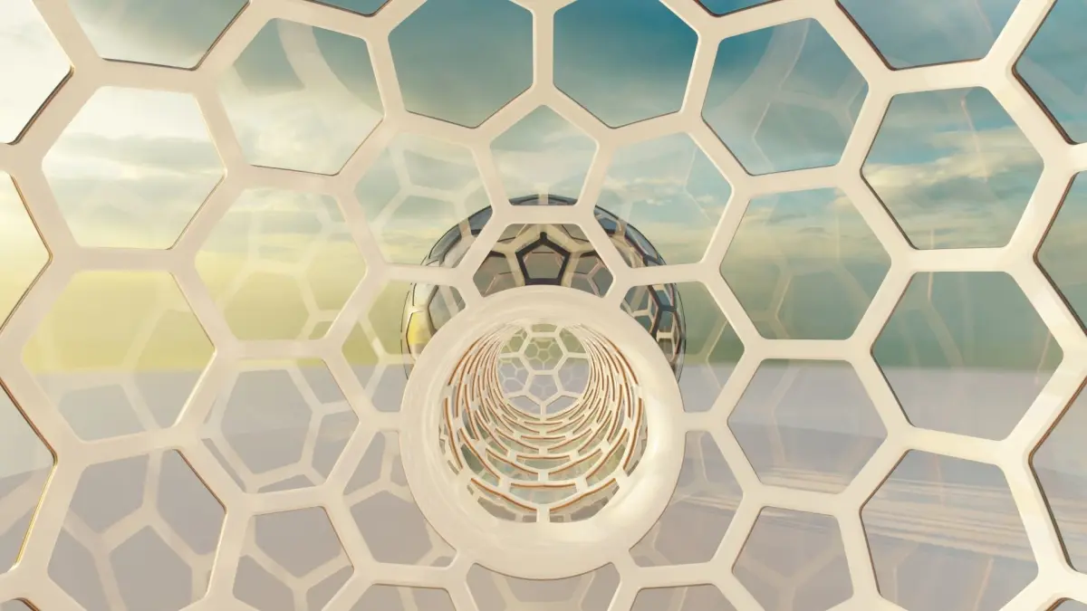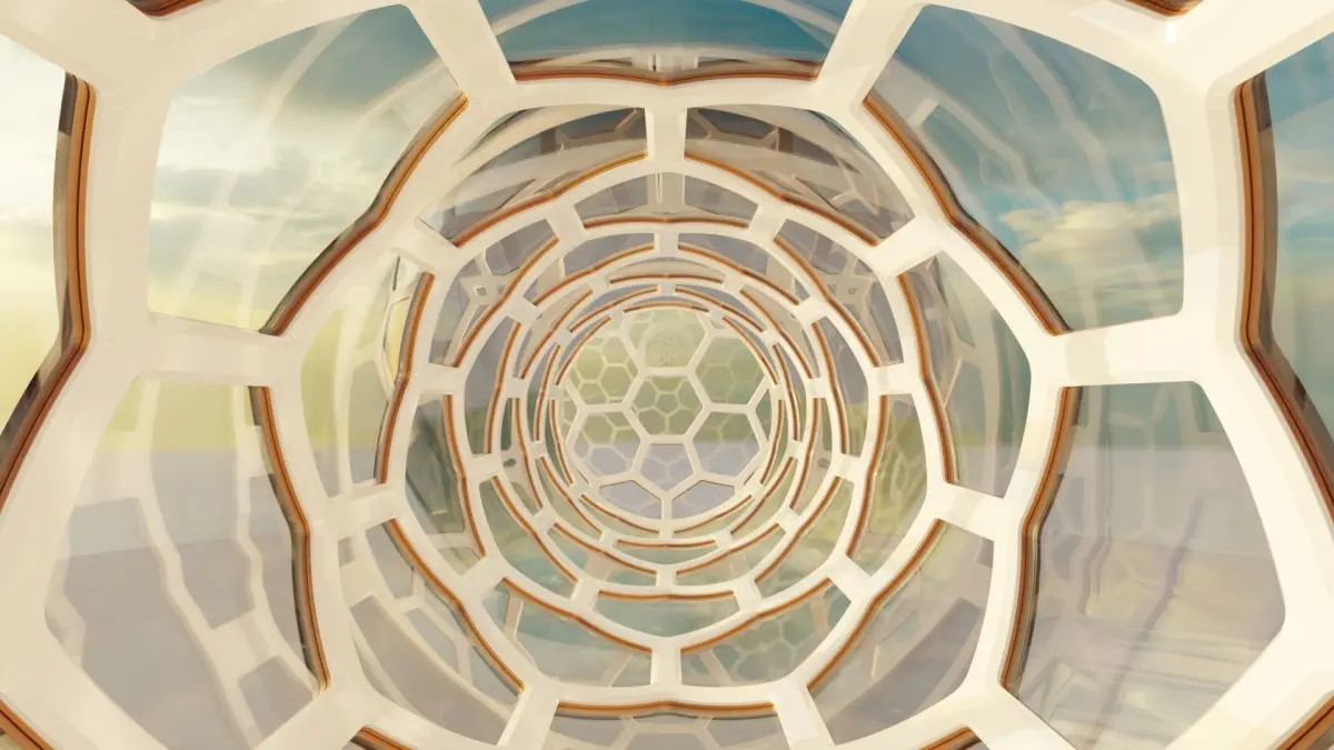 This is a high detail model of 2 spherical glass dome with a hexagonal window pattern with connected walkway. This model is suitable for extreme close-up renders.