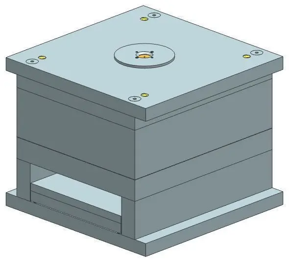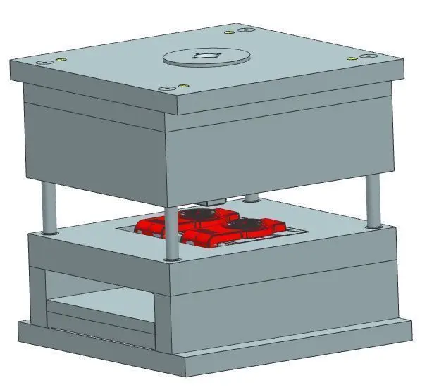 The Injection Molding Equipment is a complete 3D model in STEP format. It contains all the essential parts such as: Core & Cavity, Plates, Ejector Pins, Cooling Channel, Gate & Runner System, Sprue Bush, Bolts & Screws.