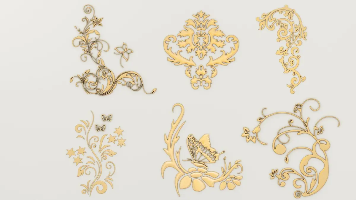 Set_1 of decorative patterns. The modifier stacks are not collapsed, easy to edit. Ready for 3D printing. Polygon set on the first level of smoothing 80 843 polygons. Archive contains 3d max file, obj file, fbx file and STL fileSet_2 of decorative patterns. Polygon set on the first level of smoothing 555 256 polygons. The set consists of 18 elements that are suitable for decorative decoration of furniture, walls, etc. Archive contains 3d max file, obj file, fbx file.