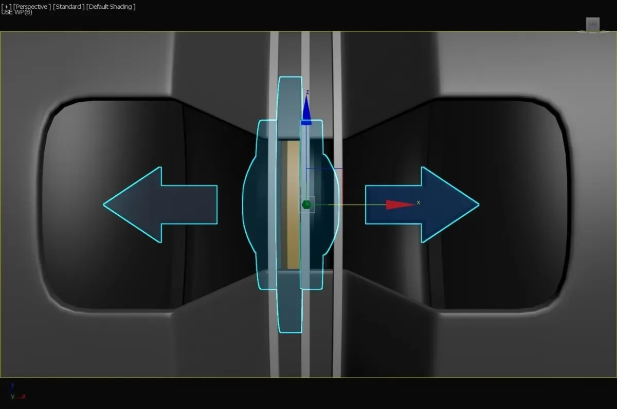 1 central magnetic core moving back and forth, moving two oposing speakers, creating a stereo signal out of a single mono speaker?