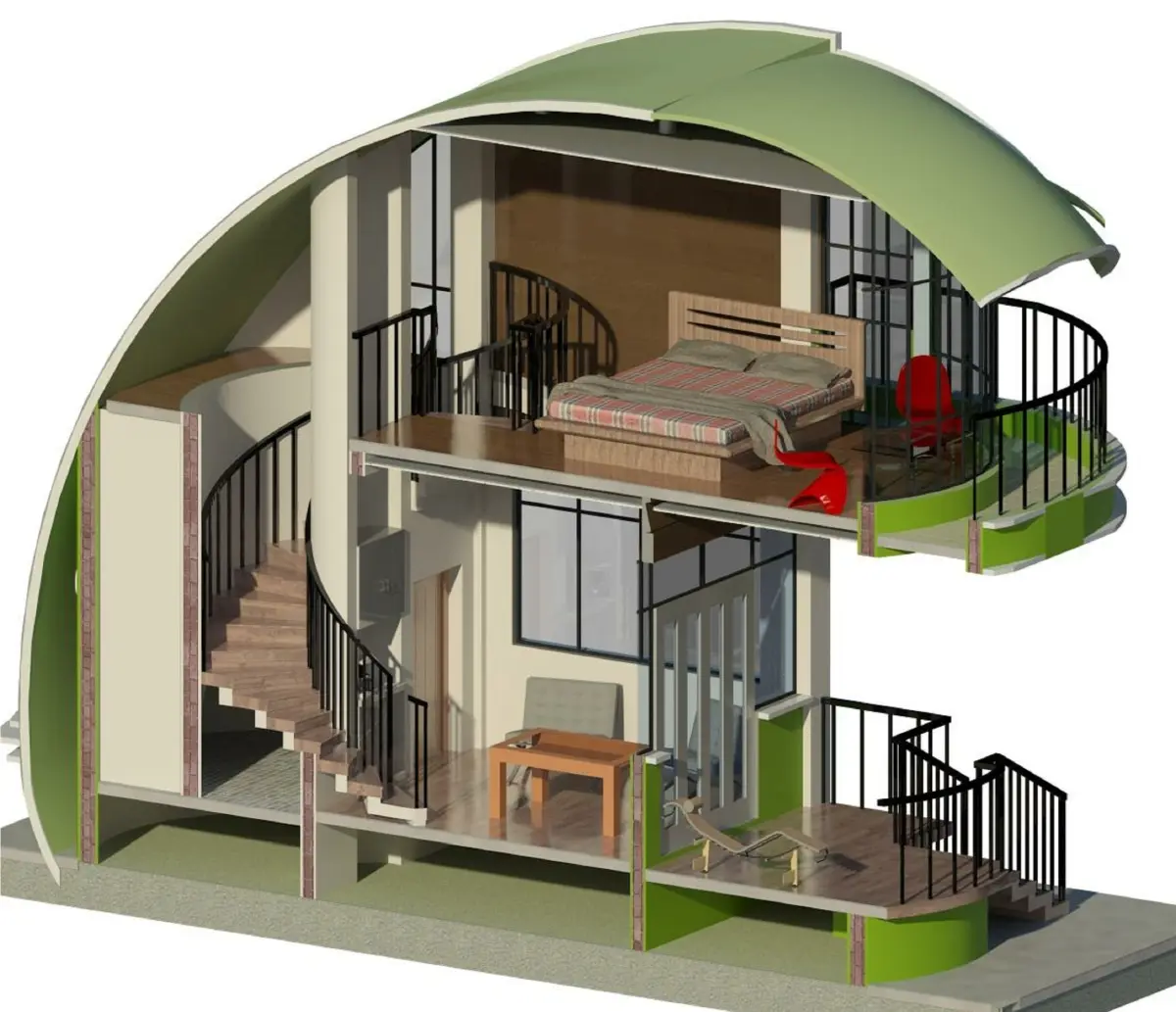 12' x 12' - Igloo Concept.2 Stories with 1 BathRoom.This 3D model was originally created with Revit Architecture 2014 and then converted to all other 3D formats. Native format is .rvt. 3dsmax scene is 3ds Max 2016 version, rendered with Vray 3.00