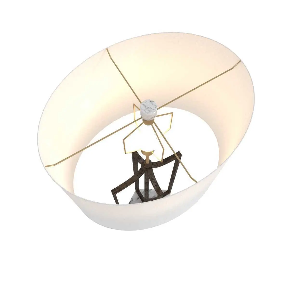 Ollie Table LampSCH-168055Available On 11/10/2021Using the concept of negative space in a most attractive way, this exquisite table lamp features four metal bars that form an elegantly simple silhouette that is anchored to a white marble base. The lamp’s oval linen shade makes this an ideal choice for smaller spaces. Also available as a floor lamp. Finish: Brushed Copper Size: 18 x 14 x 42.5”
