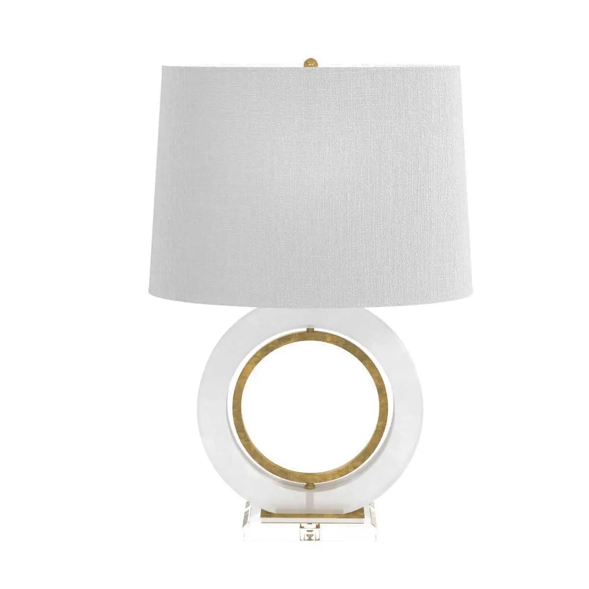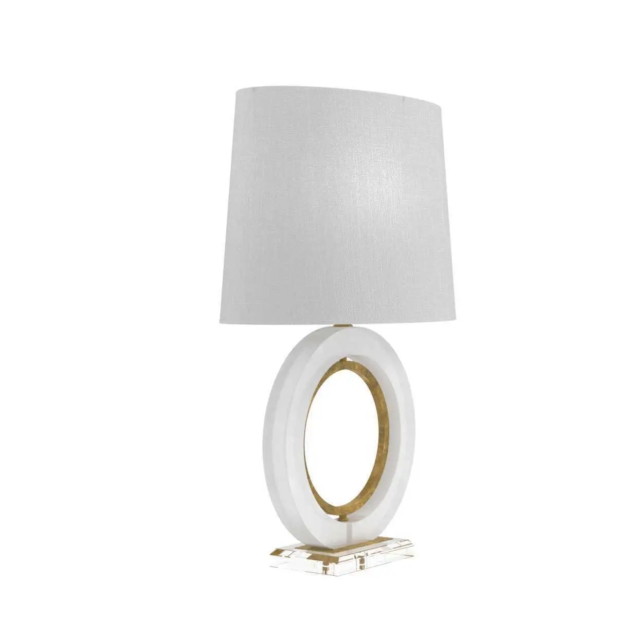 Janelle Table LampSCH-164020Available On 11/10/2021A smooth ring of alabaster encloses a central antique brass ring for the simple yet elegant Janelle Table Lamp. A white oval shade tops this white and gold toned accent lamp.