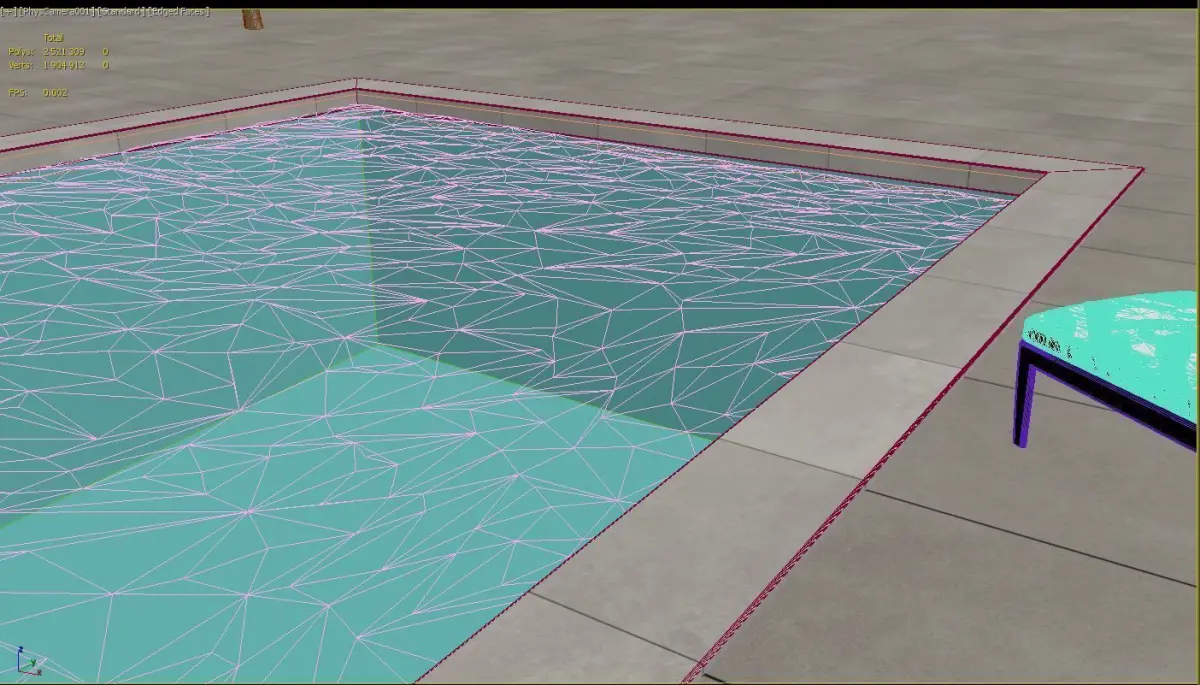 2 Pool Water Animations Calm and Waves alembic animation simulation files for 300 frames, for similar look to the preview, use the 3d max file set up with vray proxys.Set up done in 3Ds Max with vray proxys.