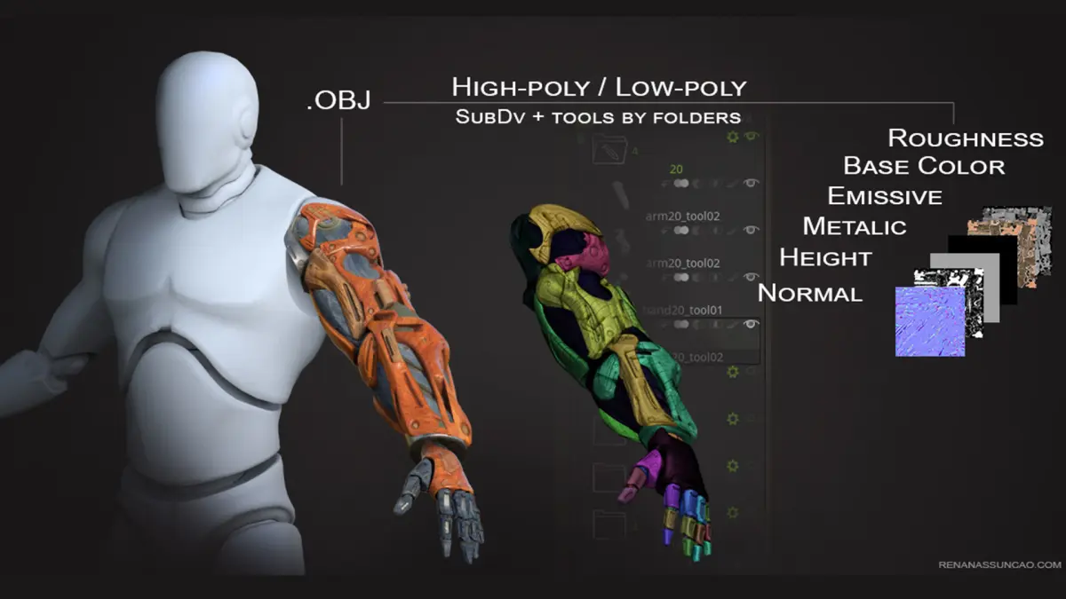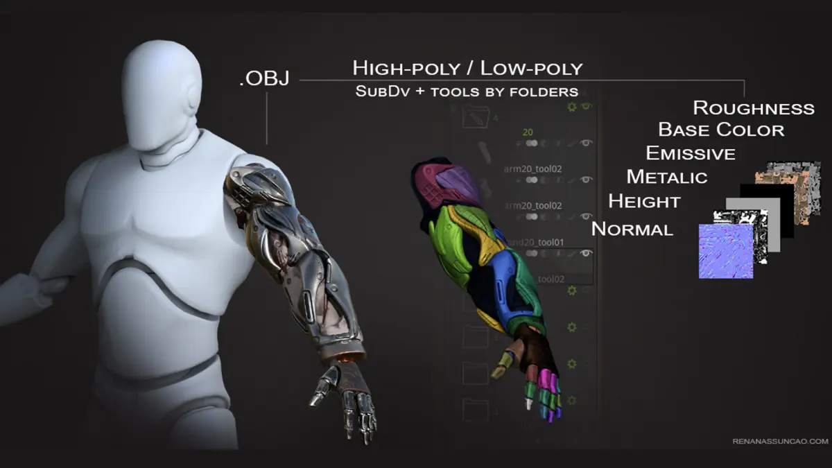 ZTL (Zbrush, filesize: 2.1 GB), OBJ (OBJ, filesize: 4.31 GB), FBX (Autodesk FBX, filesize: 4.31 GB), BIP (KeyShot, filesize: 1.71 GB), SPP (Substance Painter, filesize: 6.71 GB)