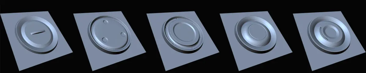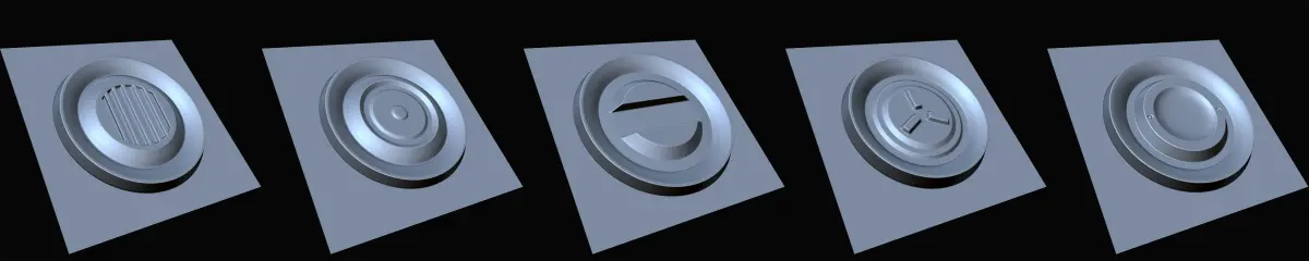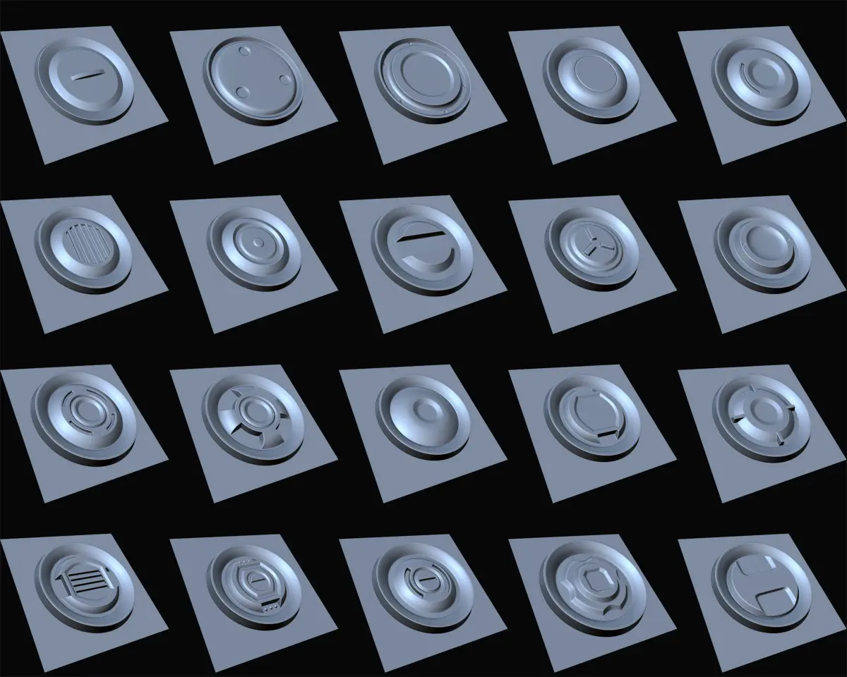 20 Hardsurface Alpha Maps are designed for hard surface model detailing, texturing, and sculpting. All ready for commercial use.