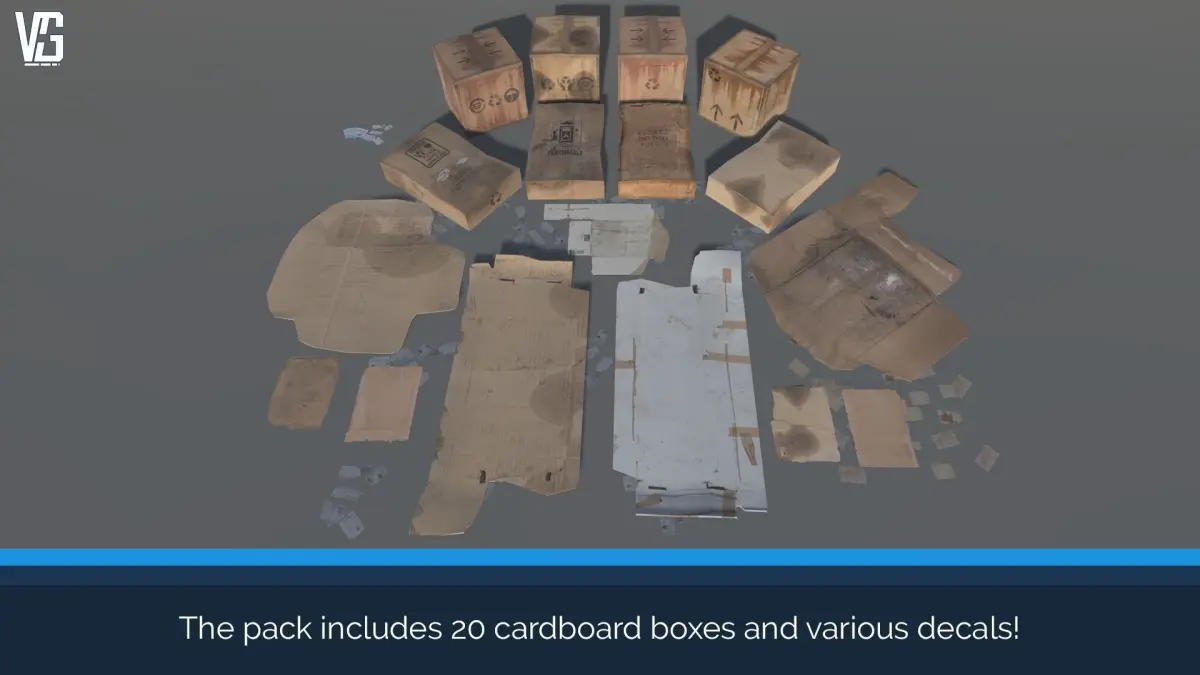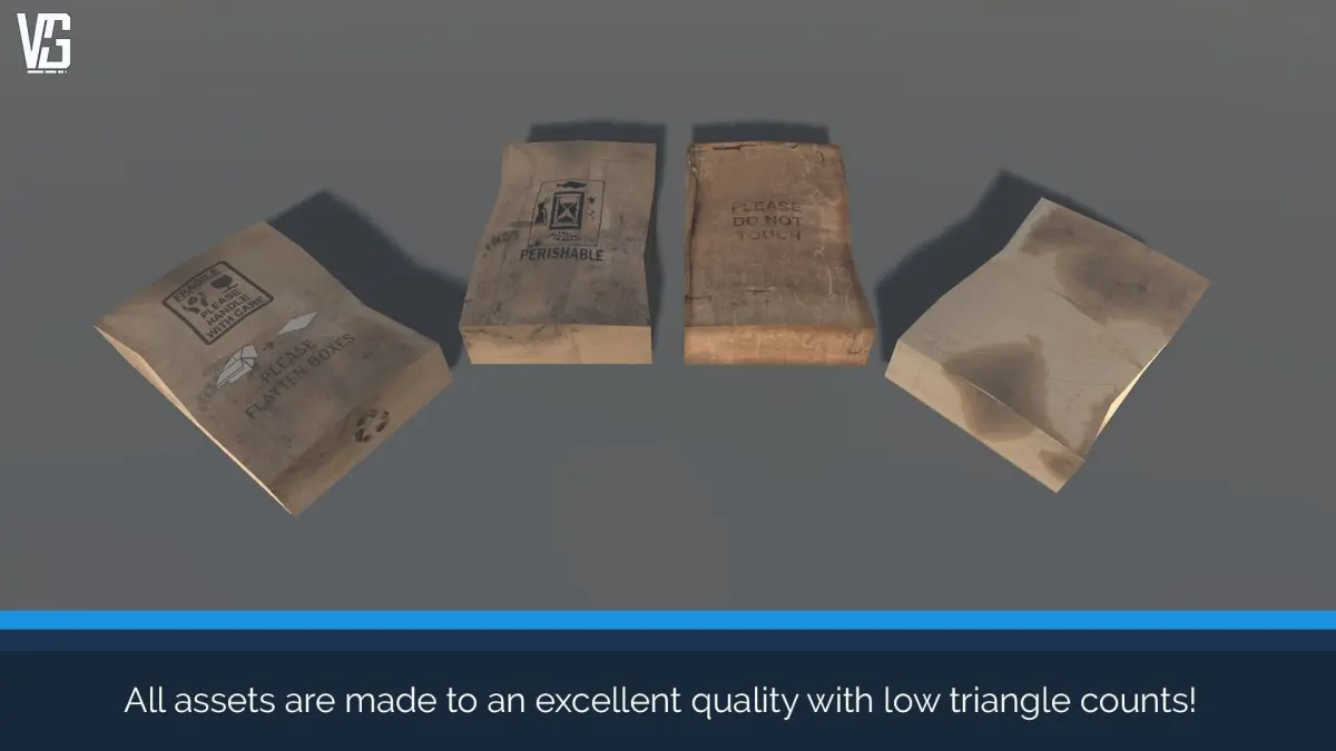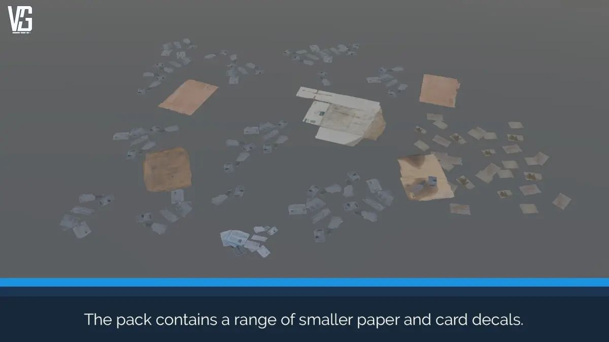 A selection of 20 prefabs including: Square, rectangle, flat cardboard models and a range of alpha decals for decorating your scene with card style debris. As seen in Unity Official Video Content.
