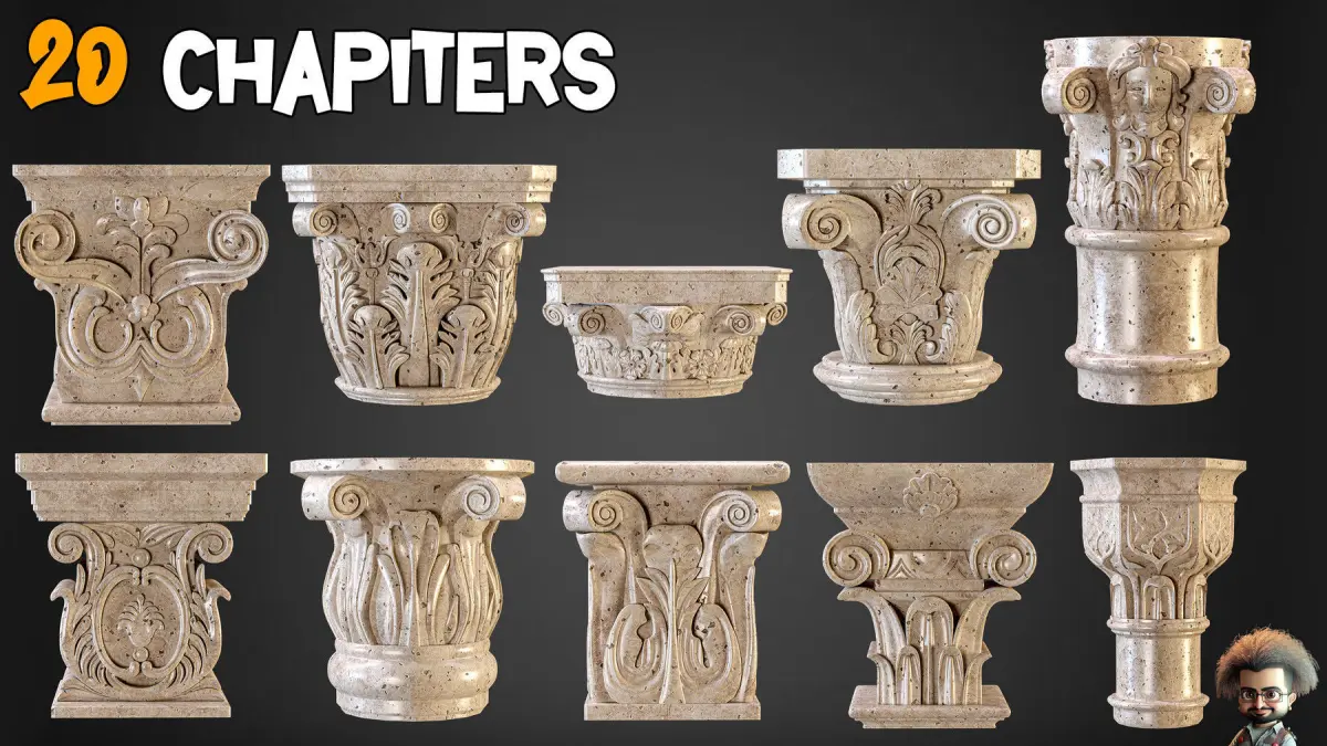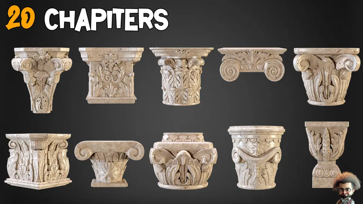 20 Corbels 3D Models + 54 Ornament Brushes and 3D Models + 11 Video Tutorials-VOL 01