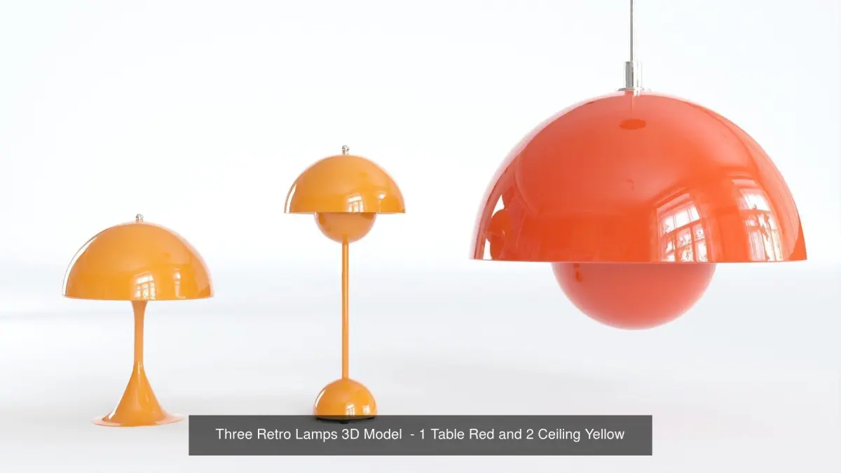 - 3 Retro Lamps 3D Model - 1 Table Red and 2 Ceiling Yellow