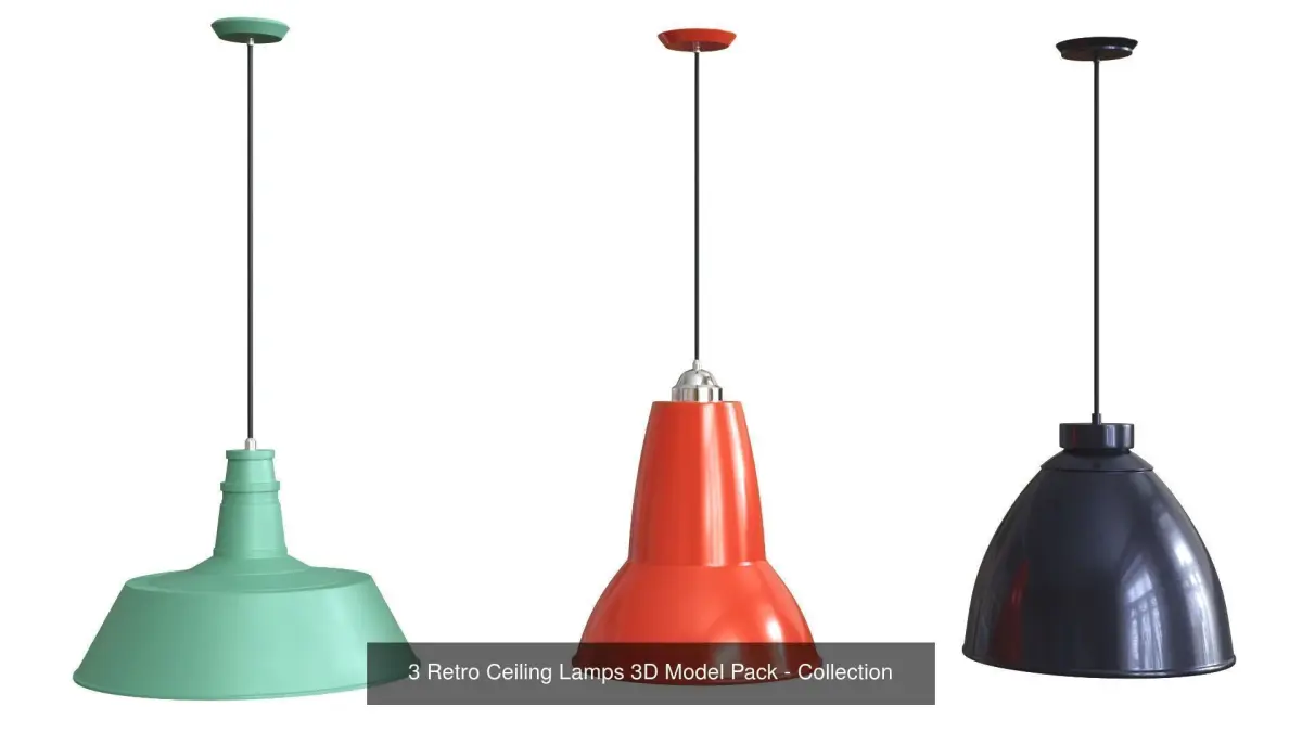 - 3 Retro Ceiling Lamps 3D Model Pack - Collection
